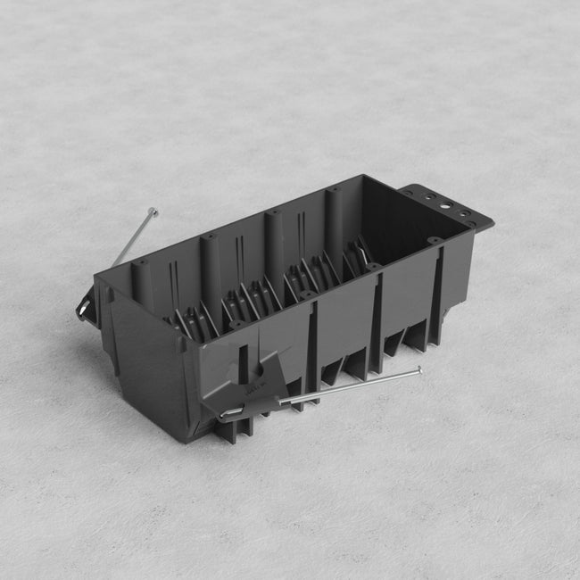 This 4 gang new work box is designed to be secured onto the wall stud.