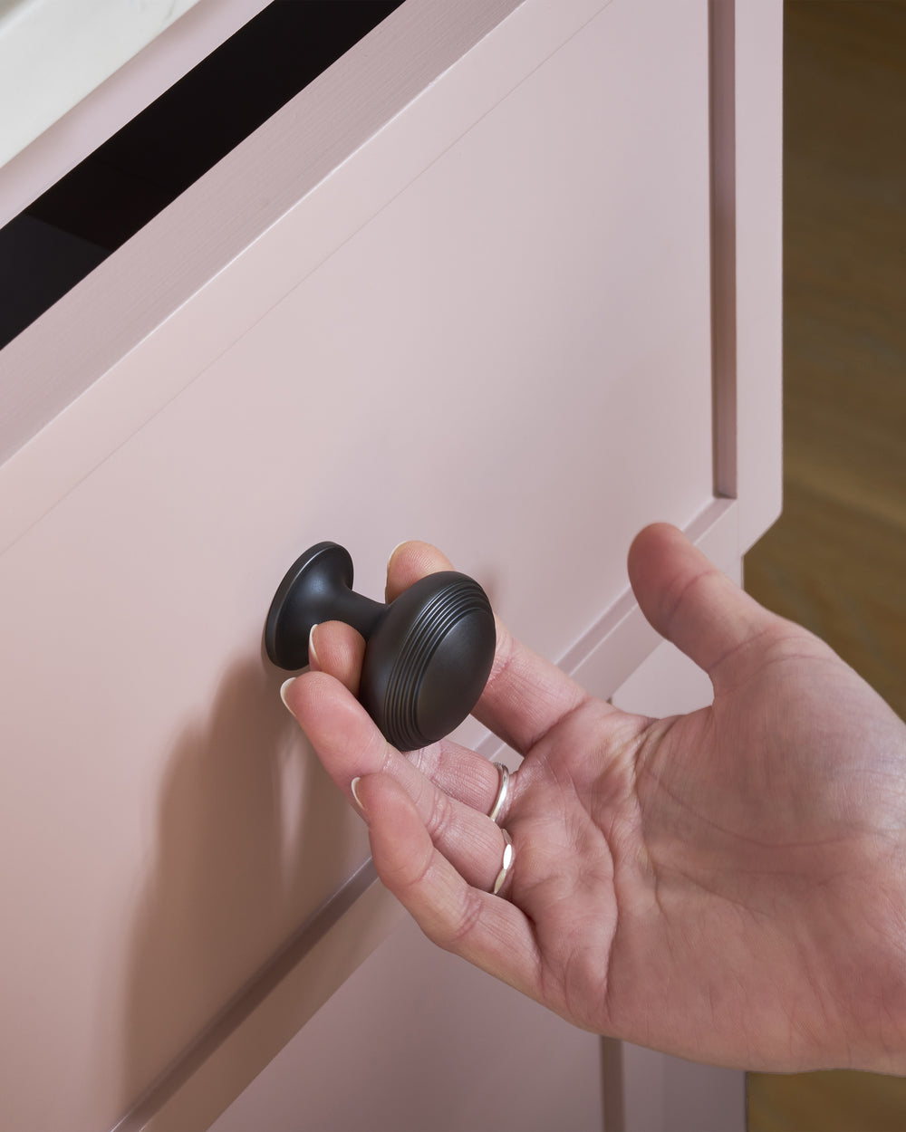 Our timeless and tactile Barlow knob works well on kitchen cabinetry, dressers, and other woodwork and furniture.