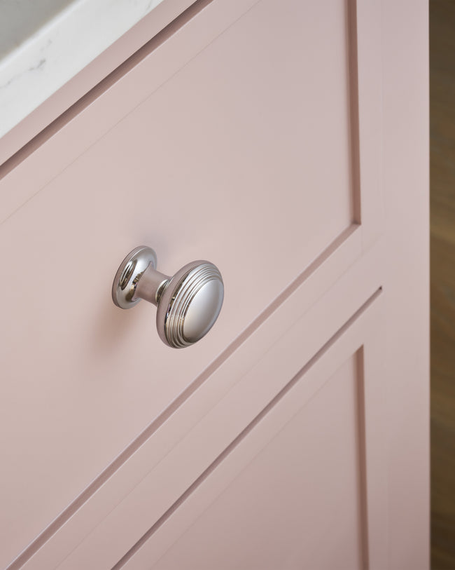 Our timeless and tactile Barlow knob works well on kitchen cabinetry, dressers, and other woodwork and furniture.