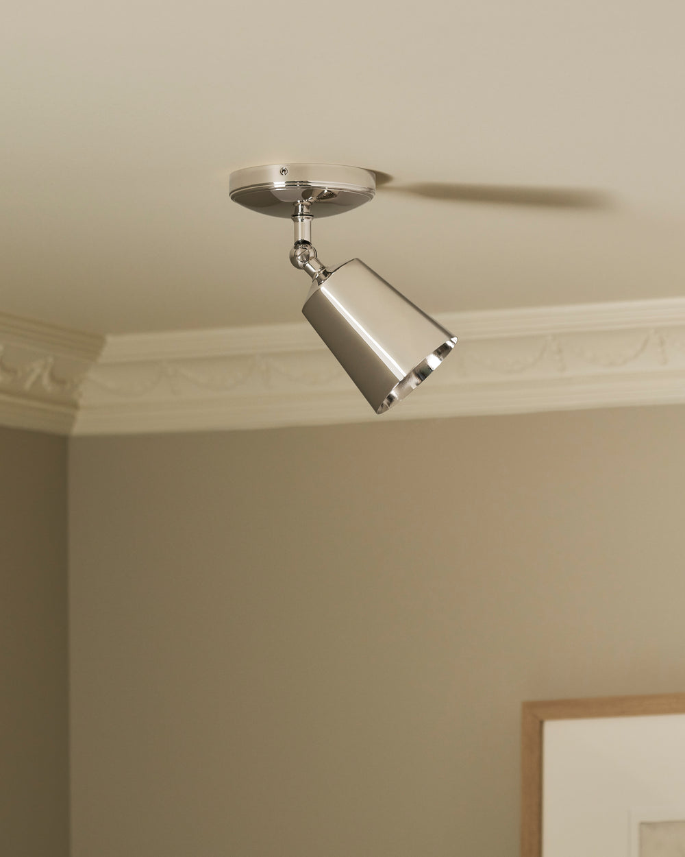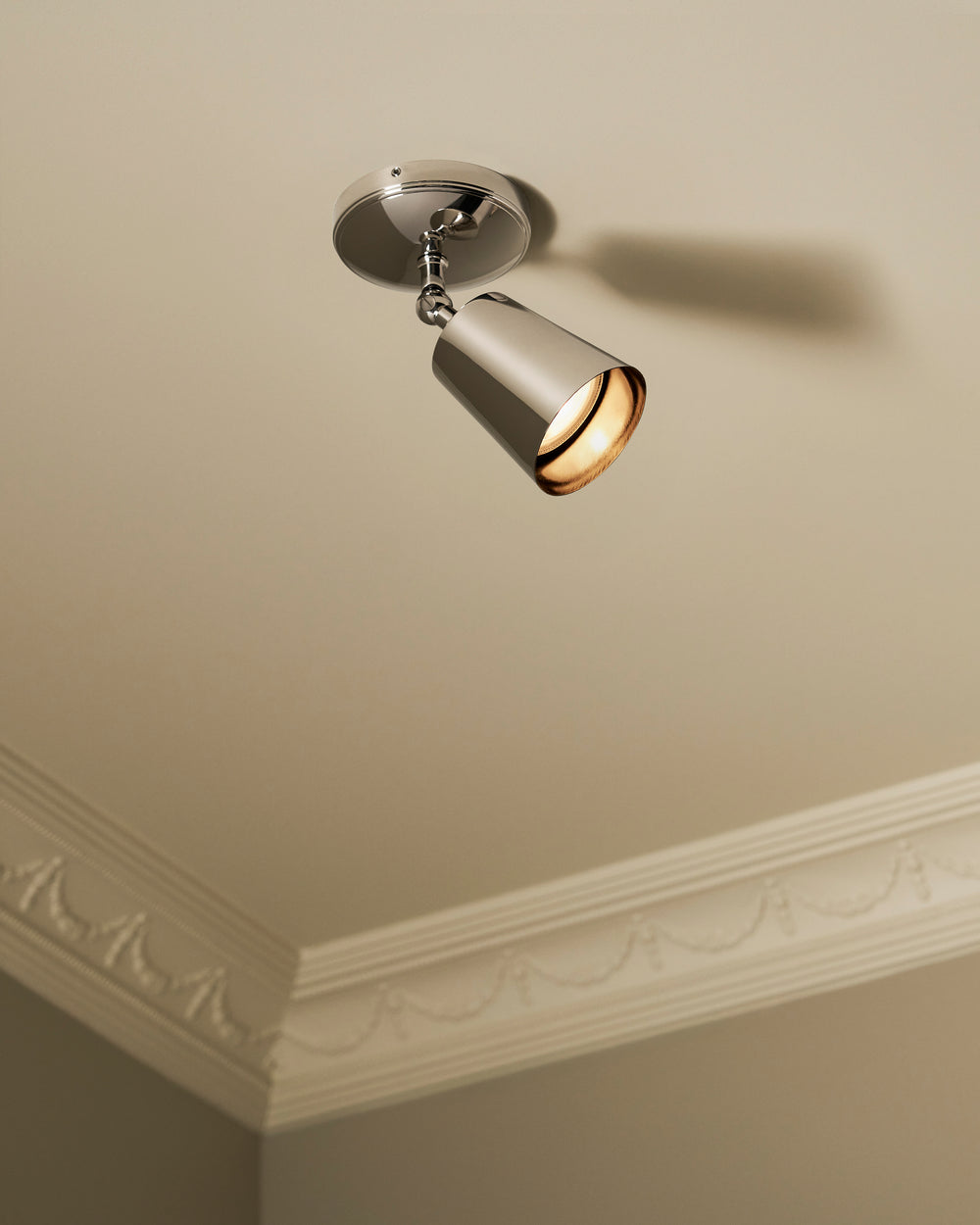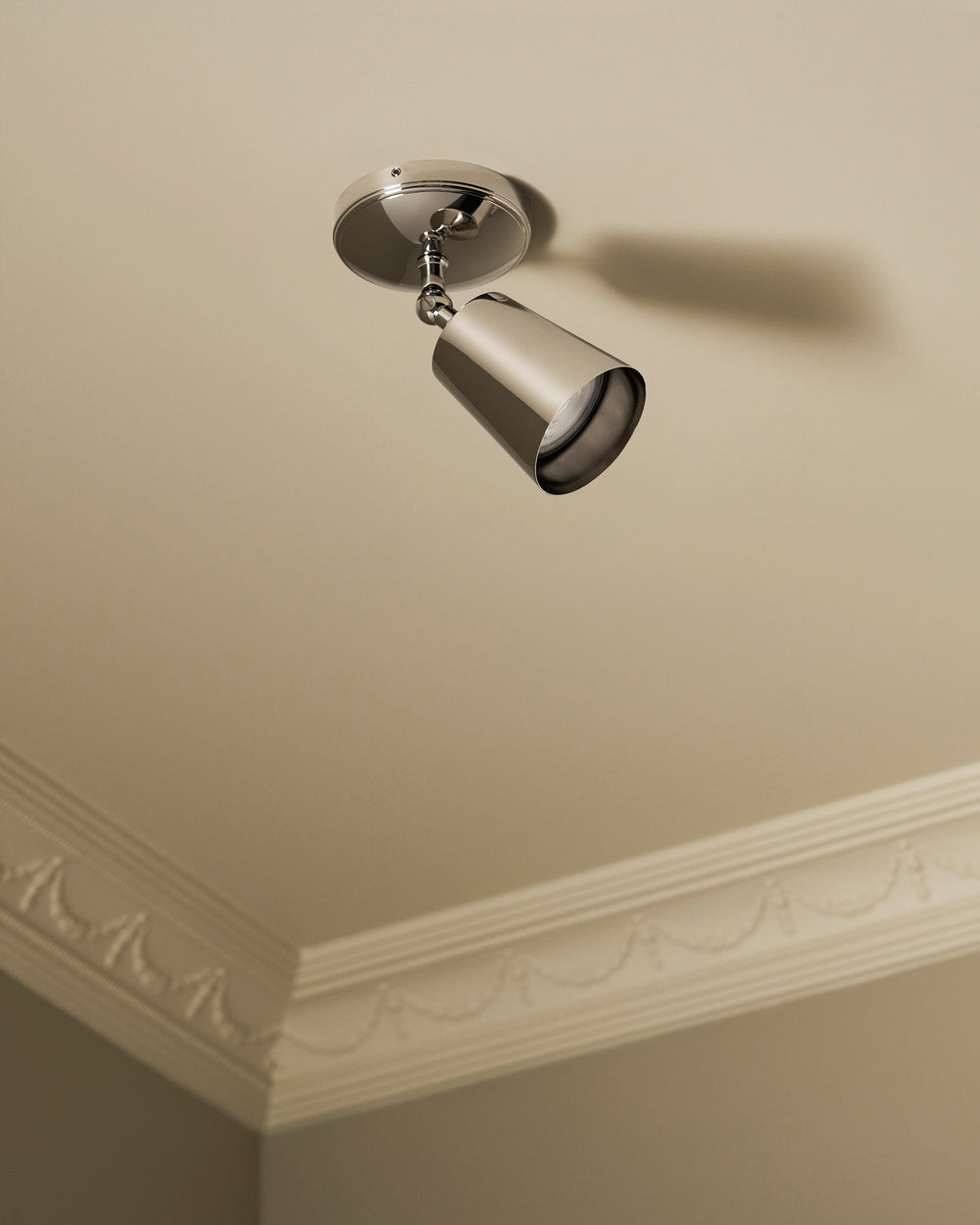 Our Baylis spotlight will sit neatly on ceilings, beams, and walls thanks to its discreet but deep mounting plate that contains all the electrics.