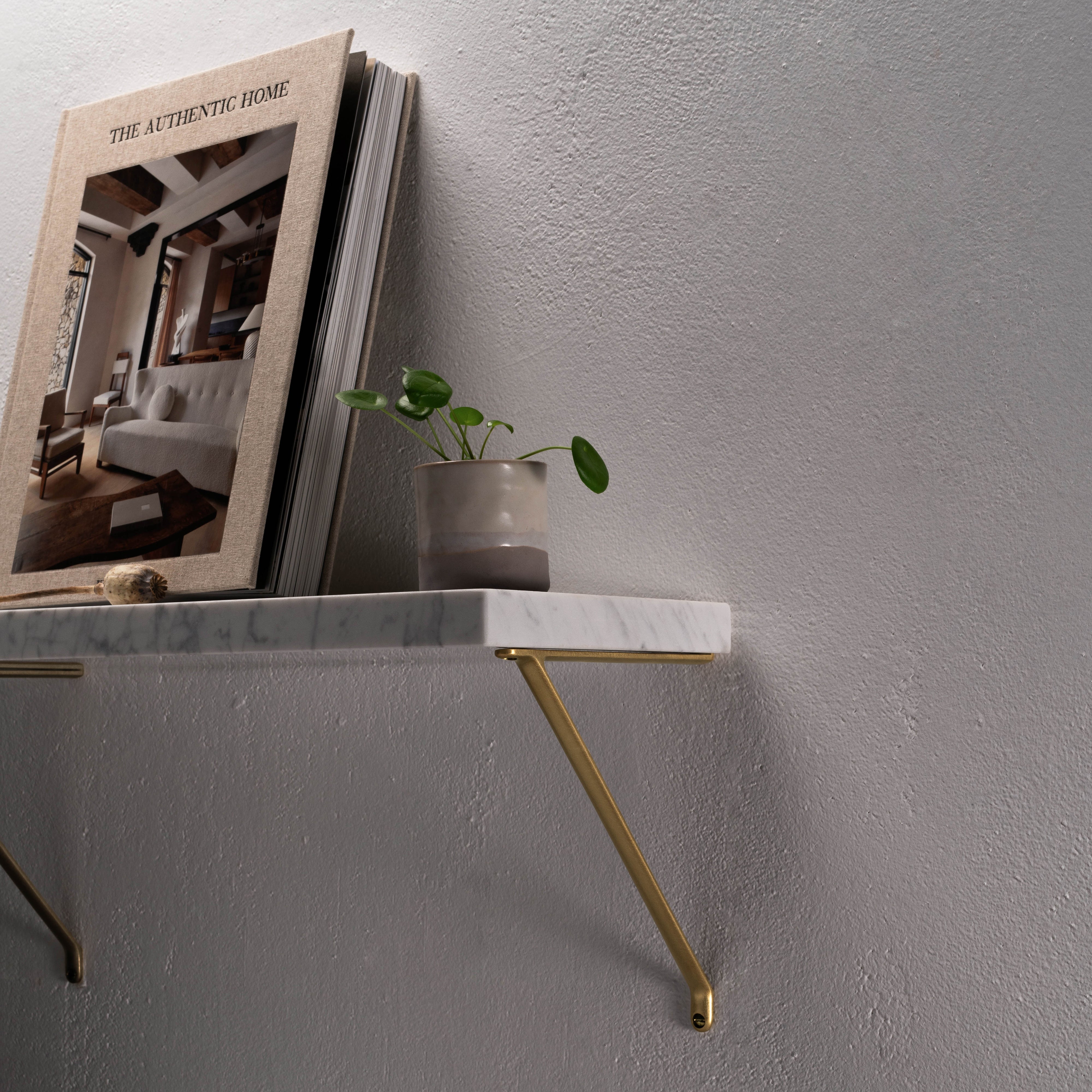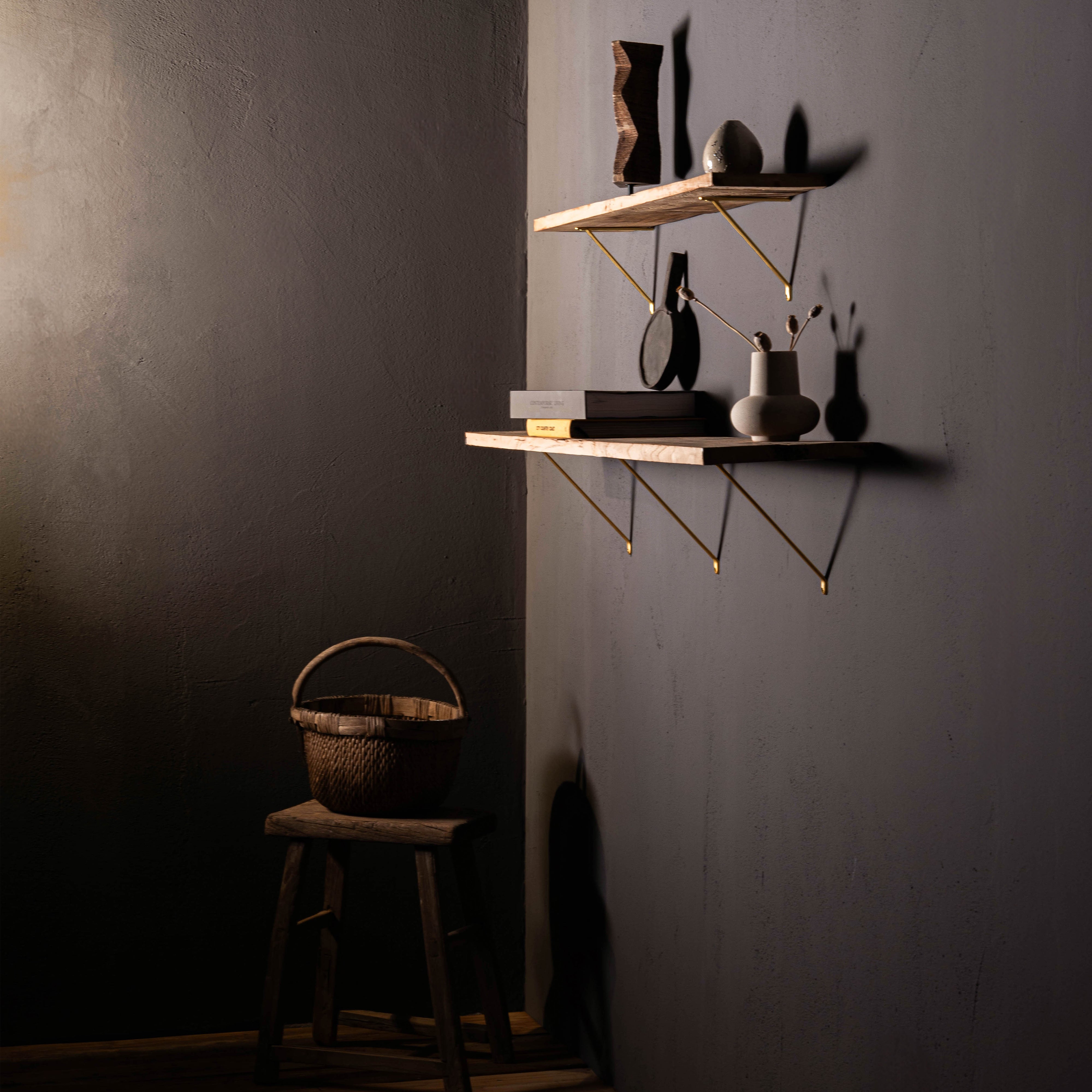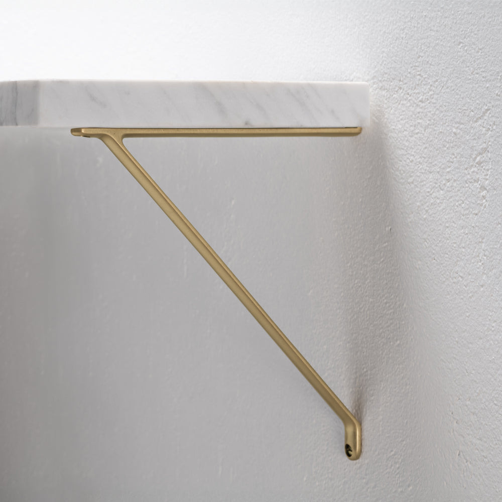 Our Brixton shelf bracket is cast from a single piece of sturdy solid brass. It’ll sit flush against your wall and hold up to 85lbs.