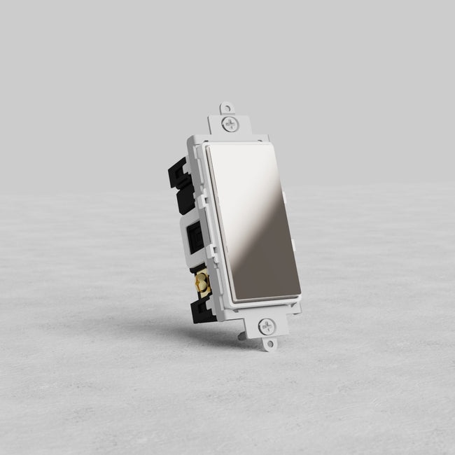 This polished nickel center retractive rocker switch works with our Kew and Grove switch plates.
