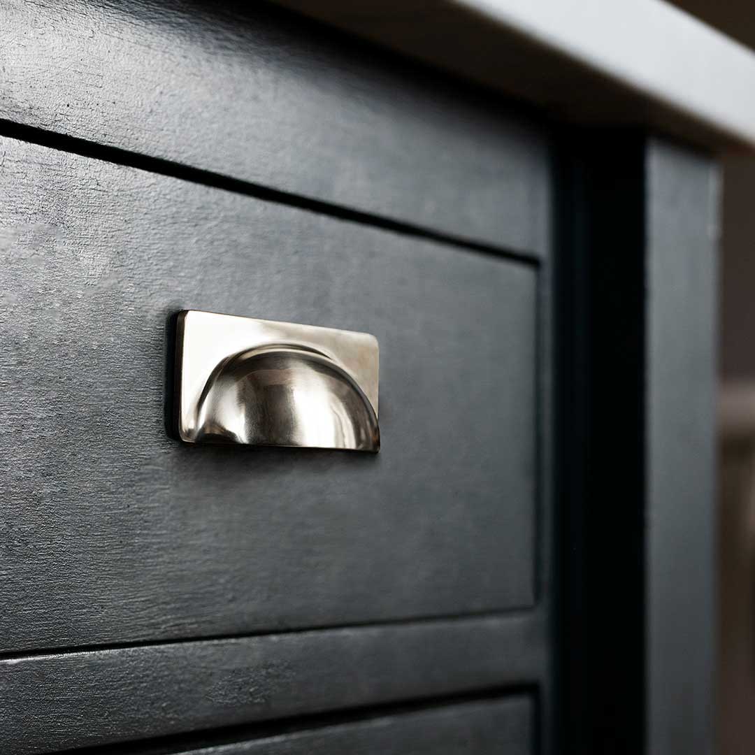 Our classic cup handle has a familiar, enduring feel, but it’s versatile enough to suit modern cabinetry too.