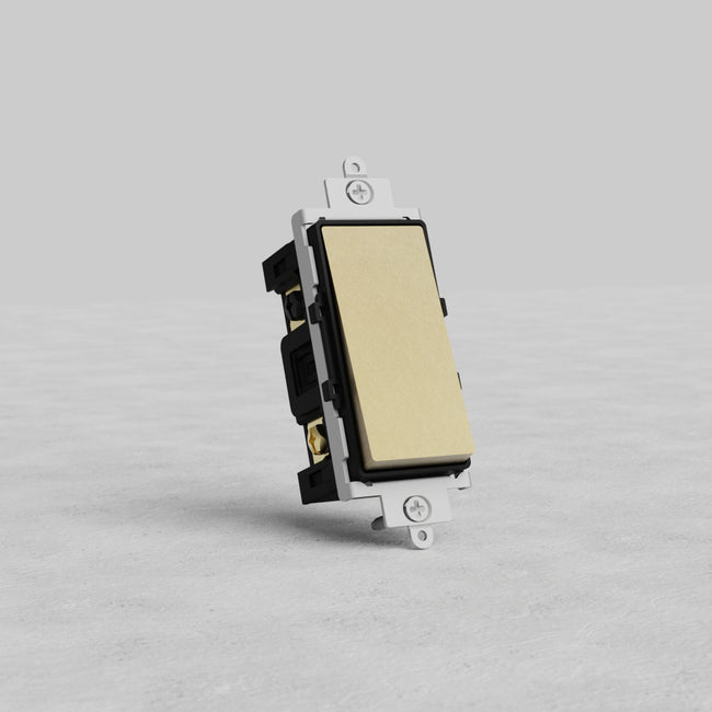 This antique brass four-way rocker switch works with our Kew and Grove switch plates.