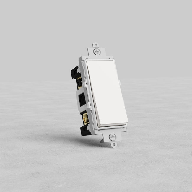 A retractive switch flicks back into the top ""off"" position when you let go. A center retractive switch flicks back to the center ""off"" position when you let go. It can be pressed up or down to make two separate connections. When used with one of our in-line dimmer modules, a short press will turn the light on and off. A press and hold will dim and brighten the light. * Both versions must be used with one in-line dimmer module per circuit.