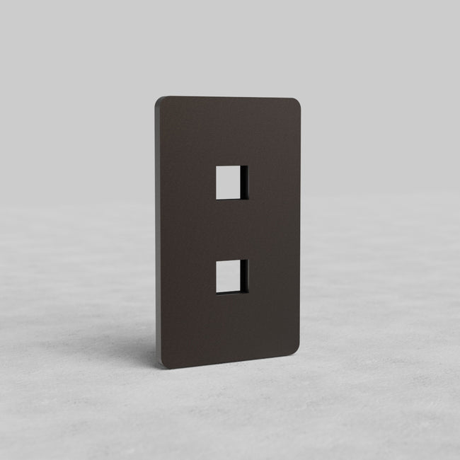 This Grove 1 gang 2x keystone plate works with any two of our CAT6, satellite, TV, and HDMI keystone modules (just make sure you choose the ones made with black plastic).