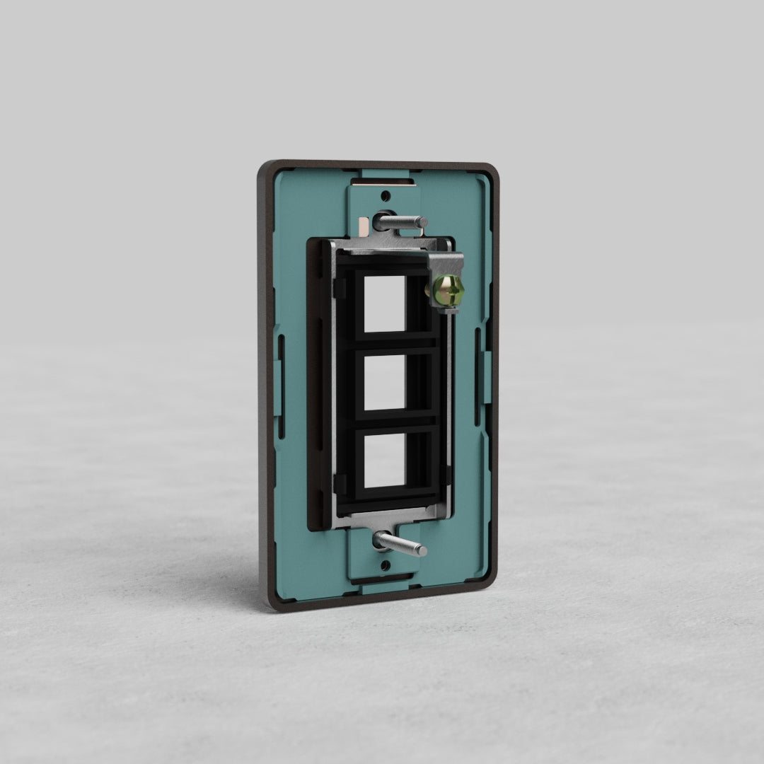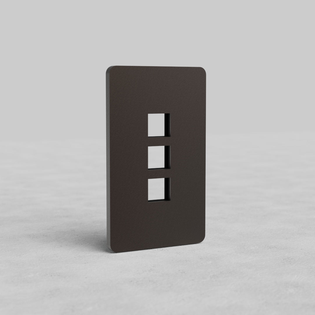 This Grove 1 gang 3x keystone plate works with any three of our CAT6, satellite, TV, and HDMI keystone modules (just make sure you choose the ones made with black plastic).