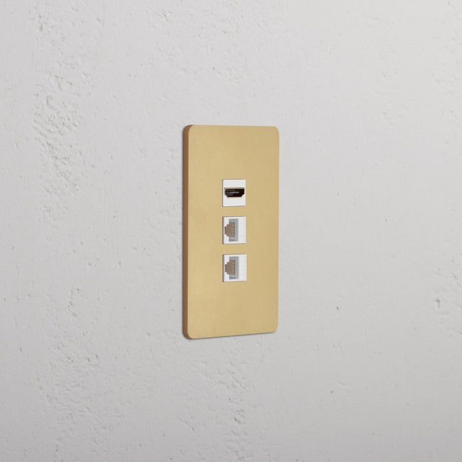 This 1 gang mixed outlet combines an HDMI keystone outlet and two CAT 6 keystone outlets on one plate.