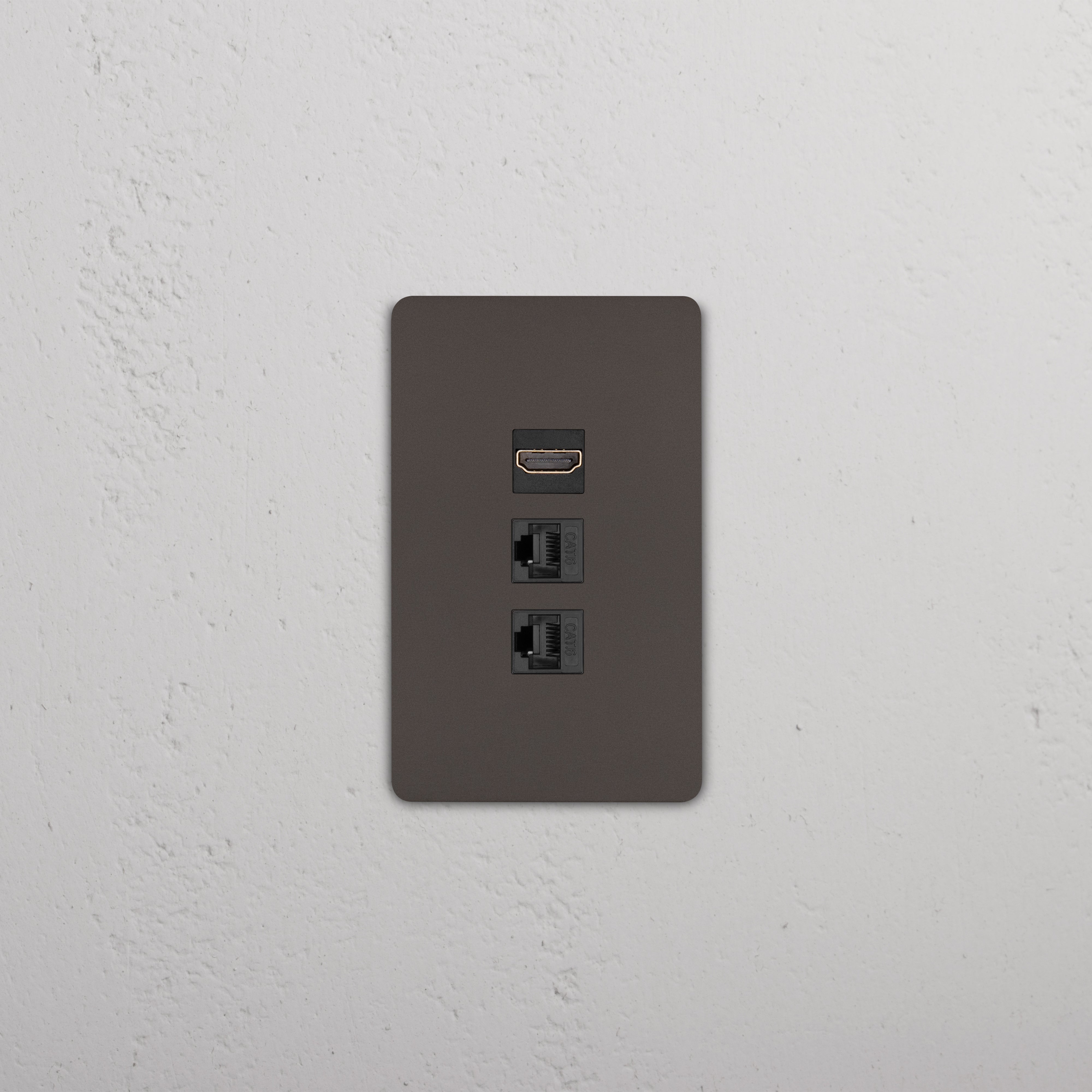 This 1 gang mixed outlet combines an HDMI keystone outlet and two CAT 6 keystone outlets on one plate.