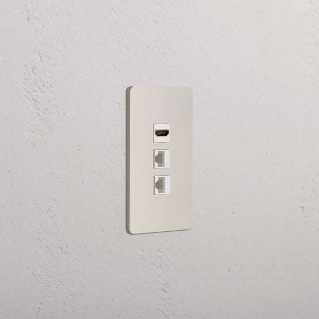 This 1 gang mixed outlet combines an HDMI keystone outlet and two CAT 6 keystone outlets on one plate.