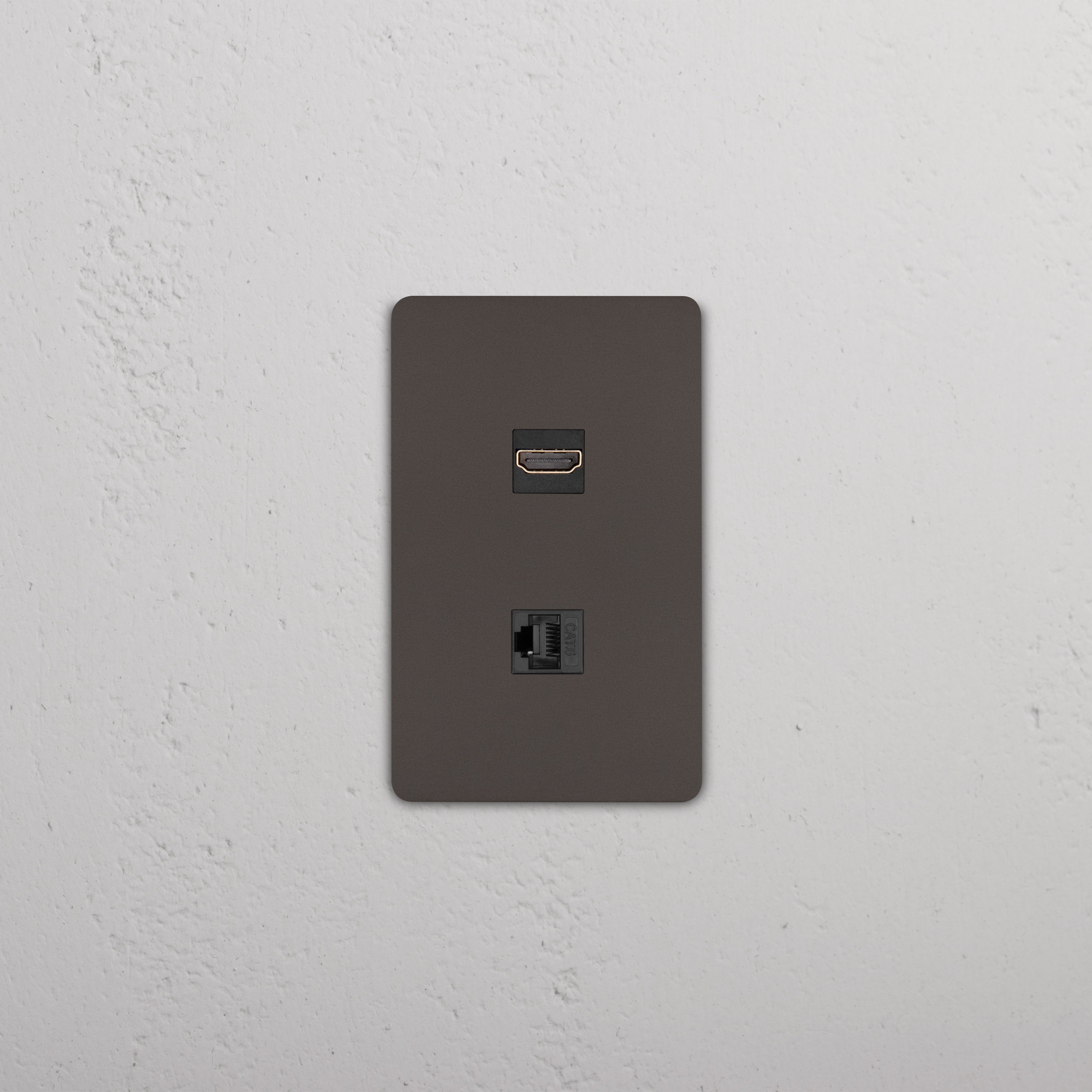 This 1 gang mixed outlet combines an HDMI keystone outlet and CAT 6 keystone outlet on one plate.