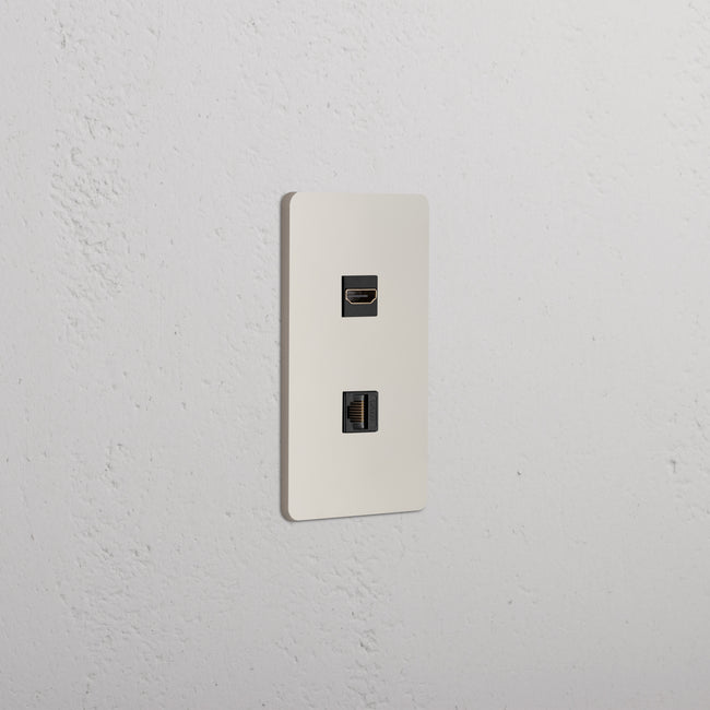 This 1 gang mixed outlet combines an HDMI keystone outlet and CAT 6 keystone outlet on one plate.