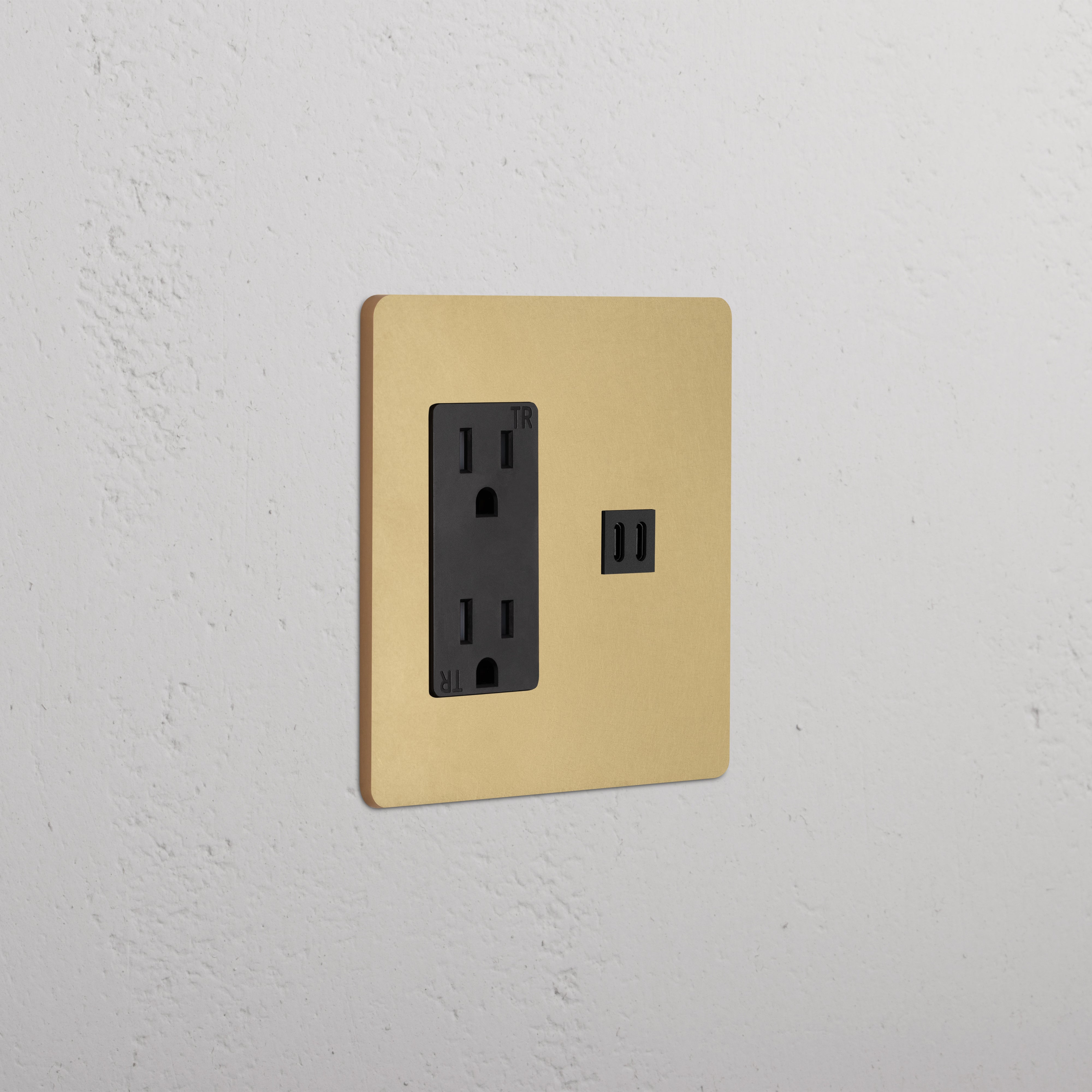 This 2 gang mixed outlet combines a 15A power outlet and a fast charge USB-C outlet on one plate.
