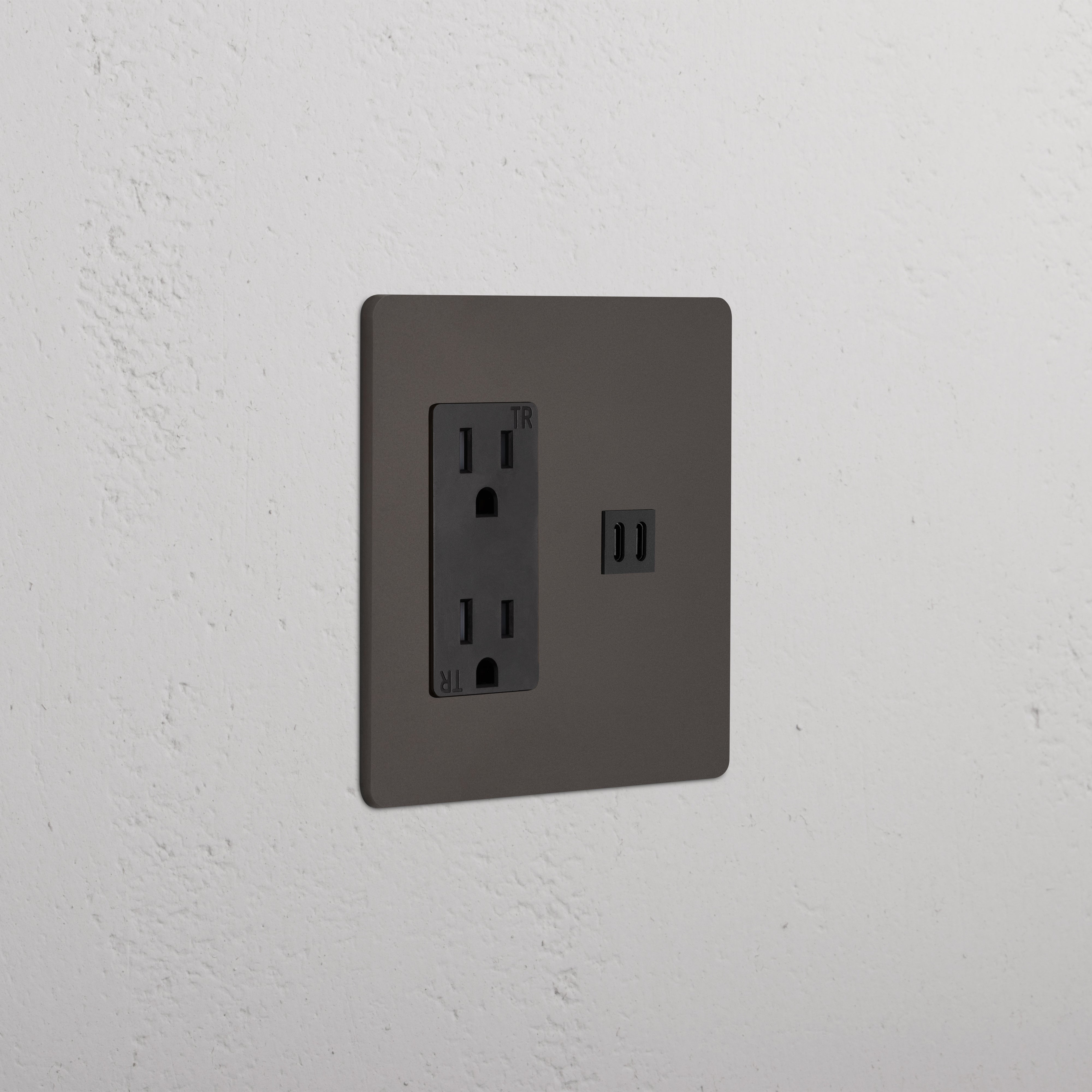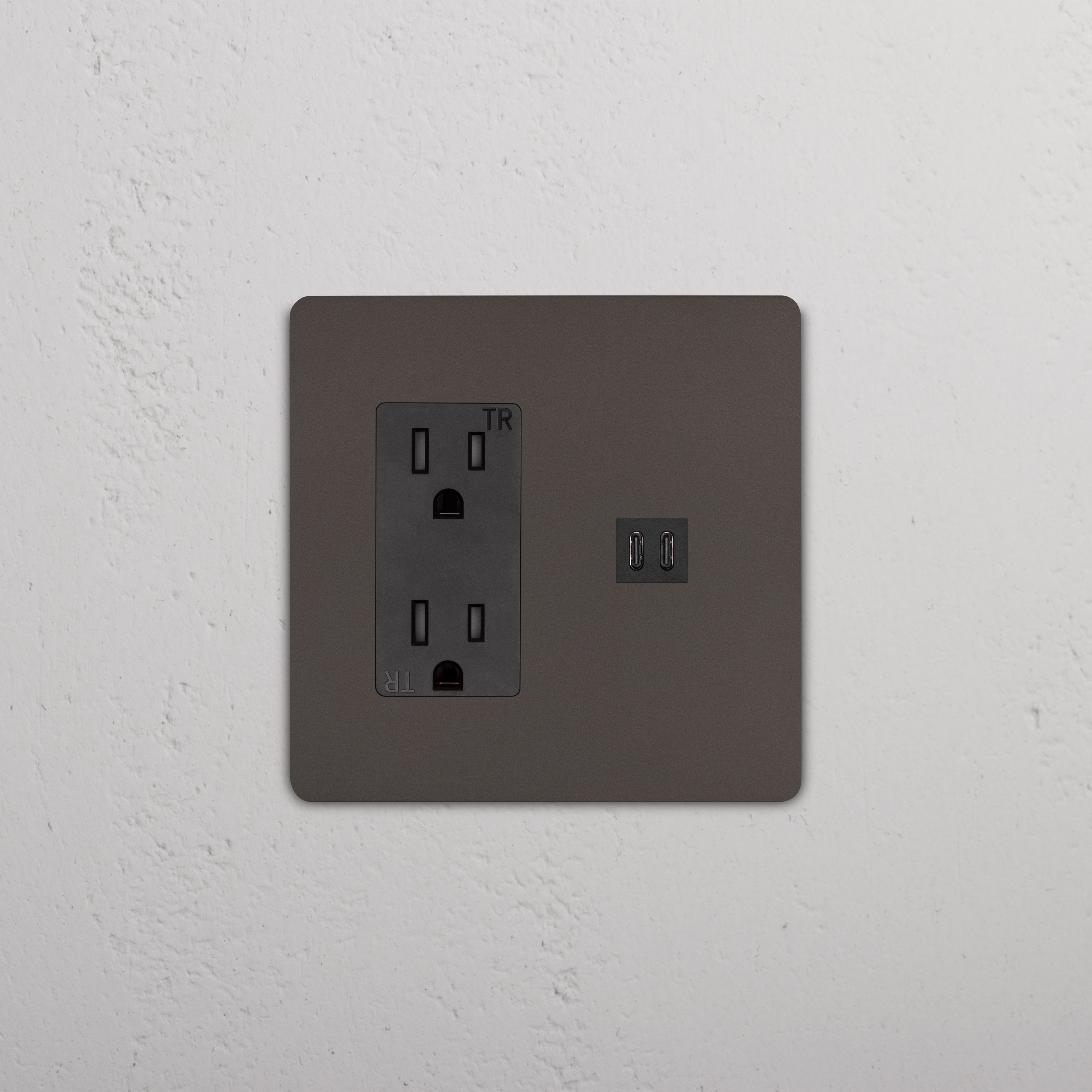 This 2 gang mixed outlet combines a 15A power outlet and a fast charge USB-C outlet on one plate.