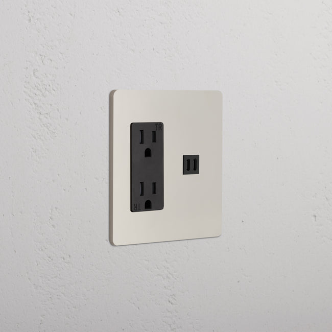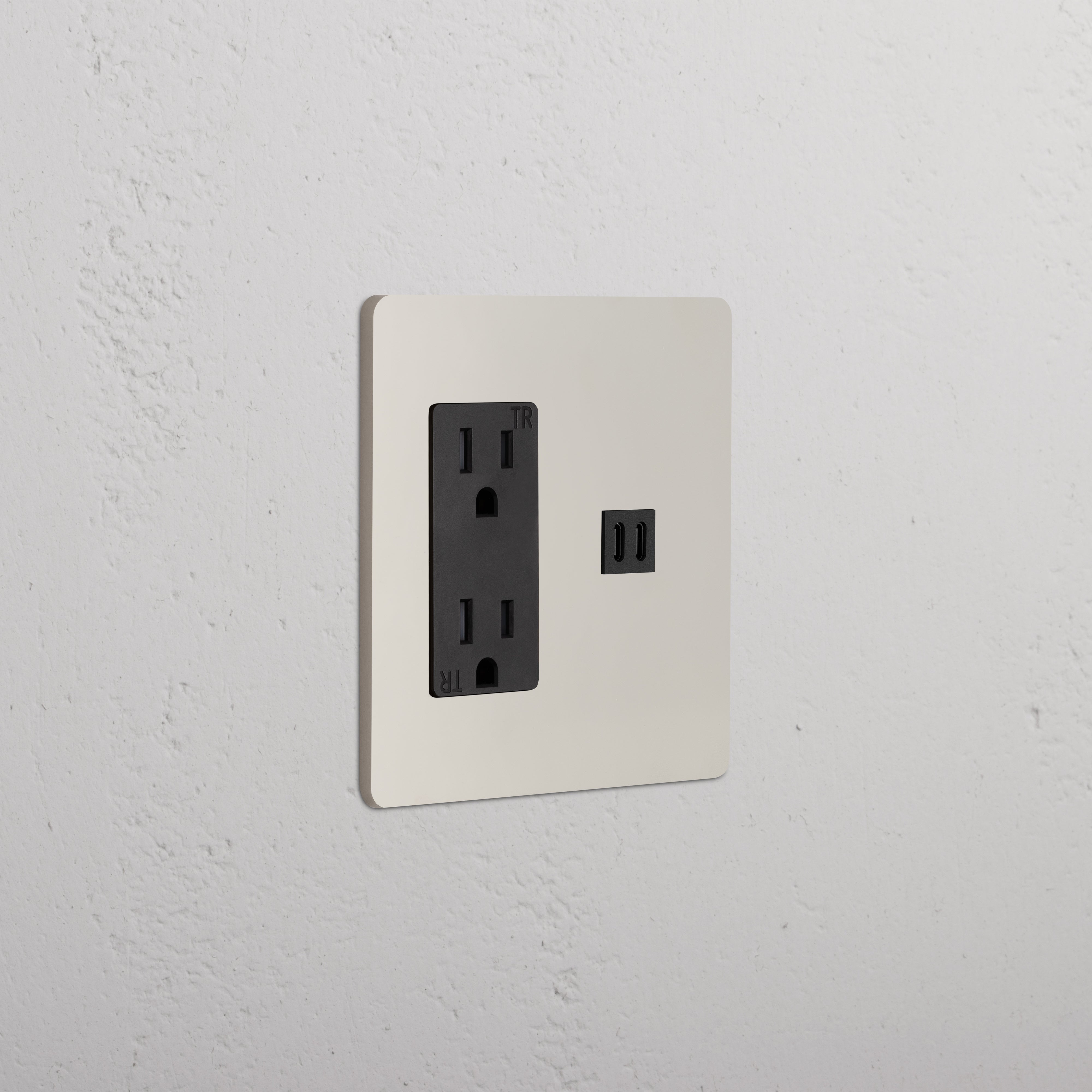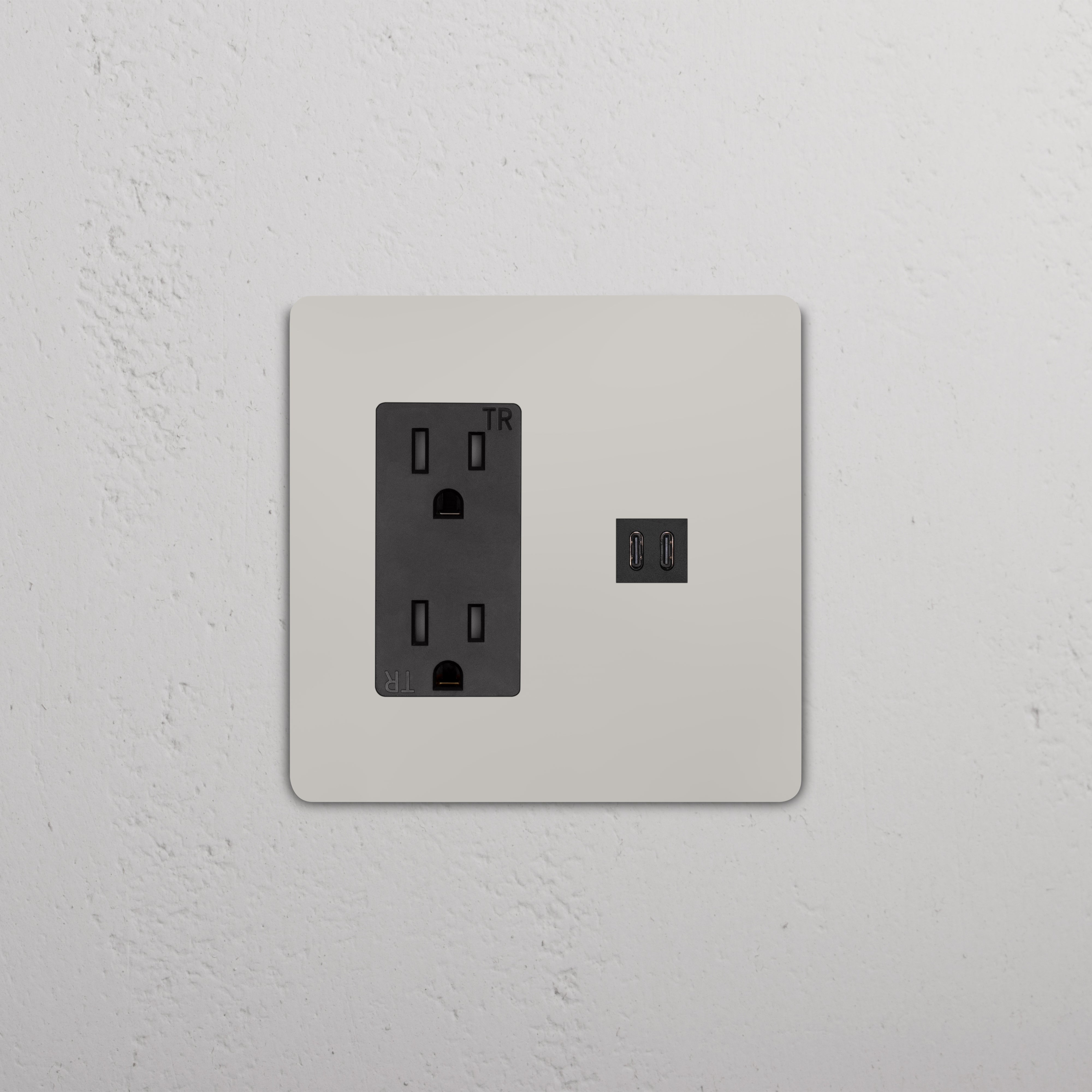 This 2 gang mixed outlet combines a 15A power outlet and a fast charge USB-C outlet on one plate.