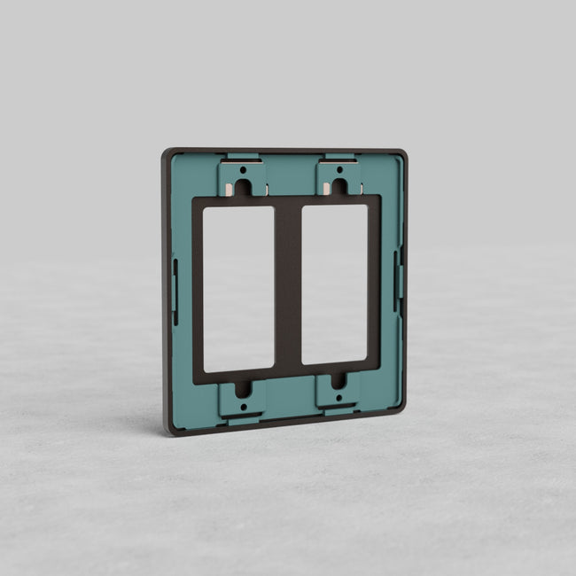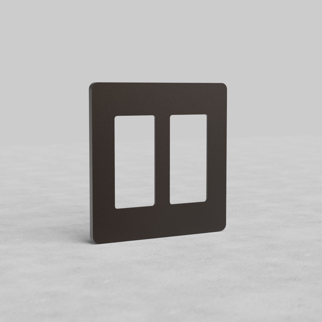 This Grove 2 gang outlet plate works with any two of our bronze rocker switches or our outlet modules (just make sure you choose the ones made with black plastic).