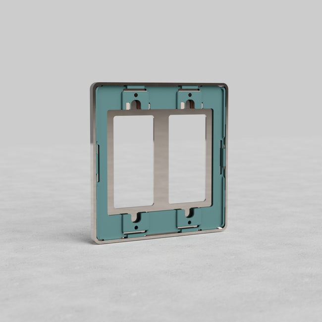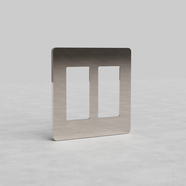 This Grove 2 gang outlet plate works with any two of our polished nickel rocker switches or our outlet modules.