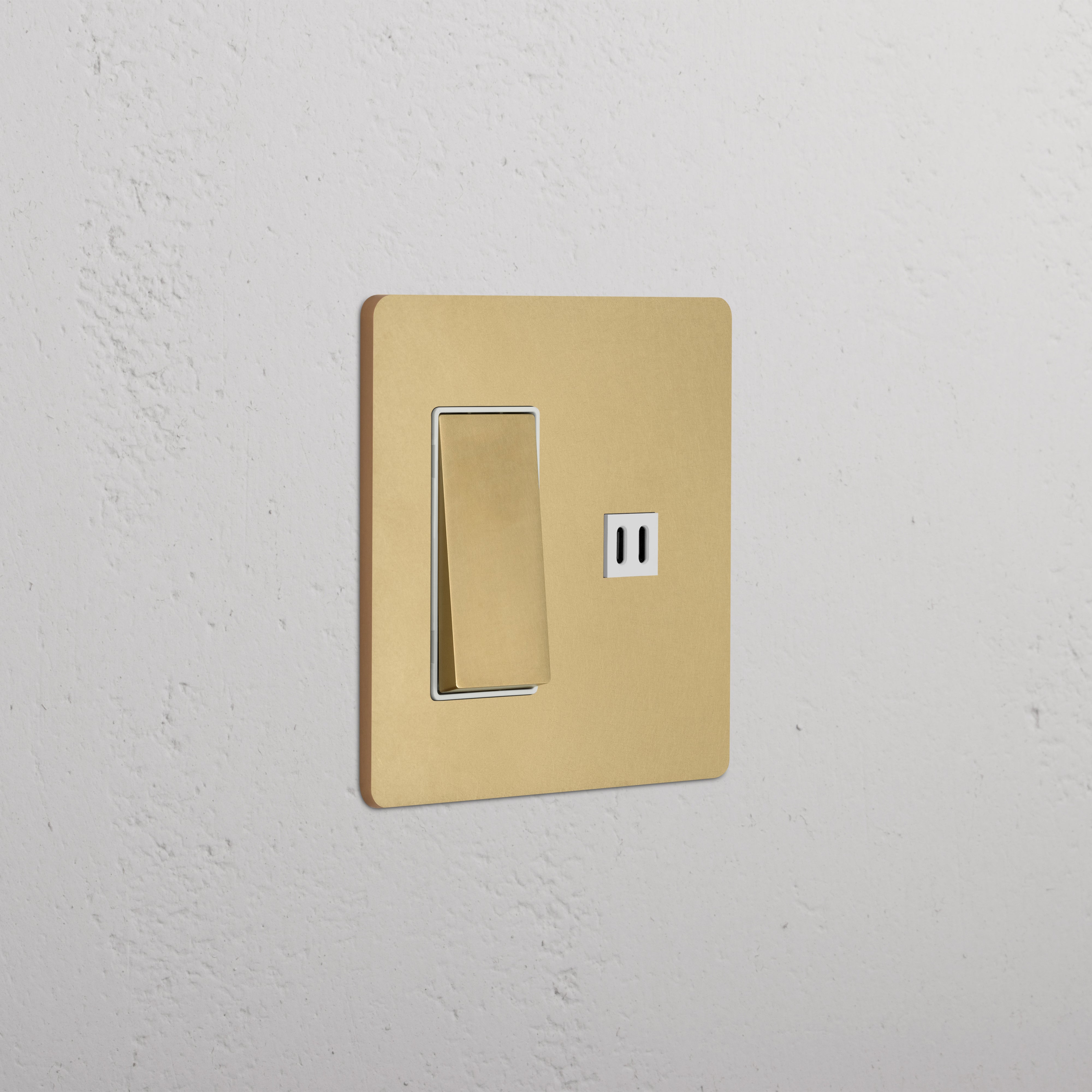 This 2 gang mixed switch and outlet combines a three-way rocker switch and a fast charge USB-C outlet on one plate.