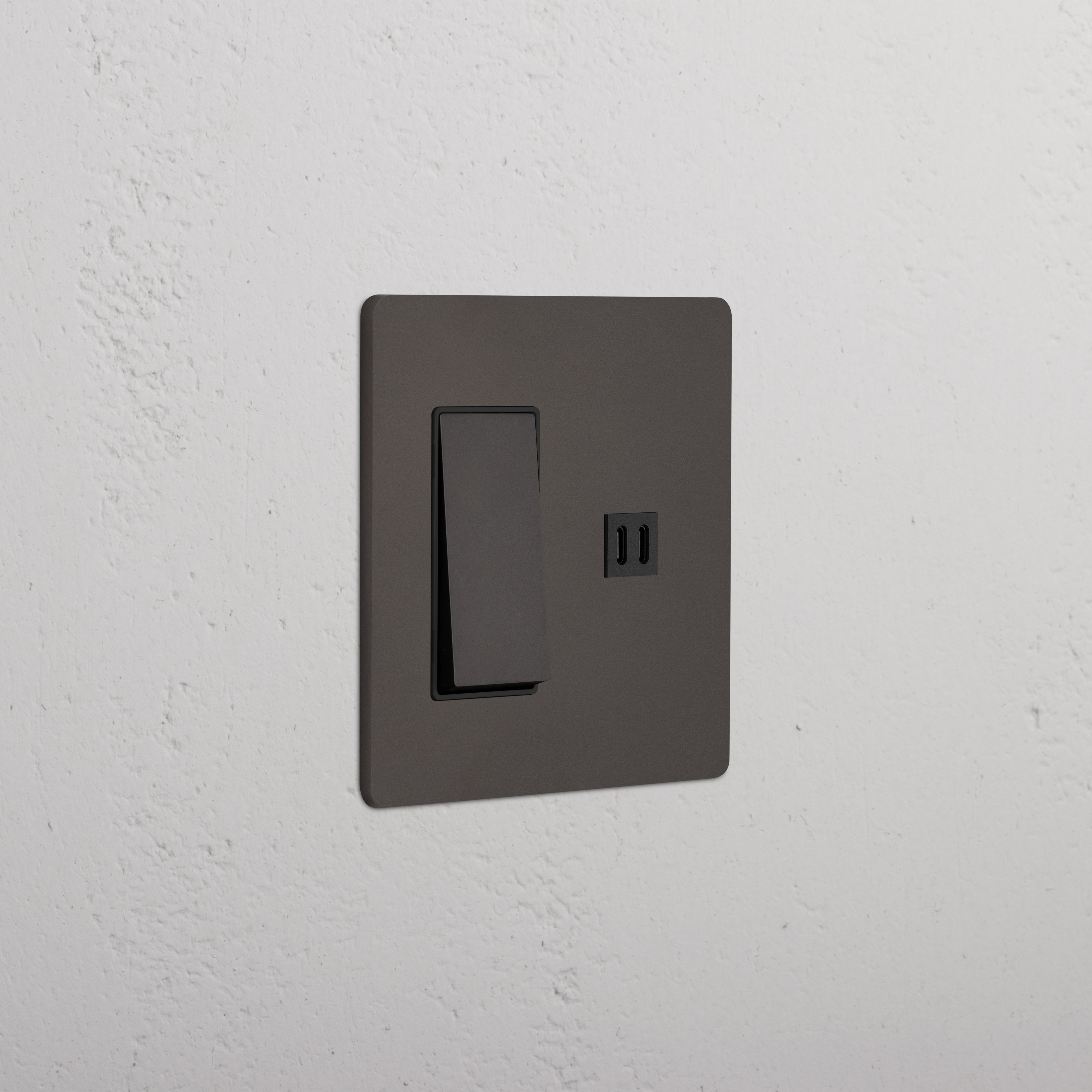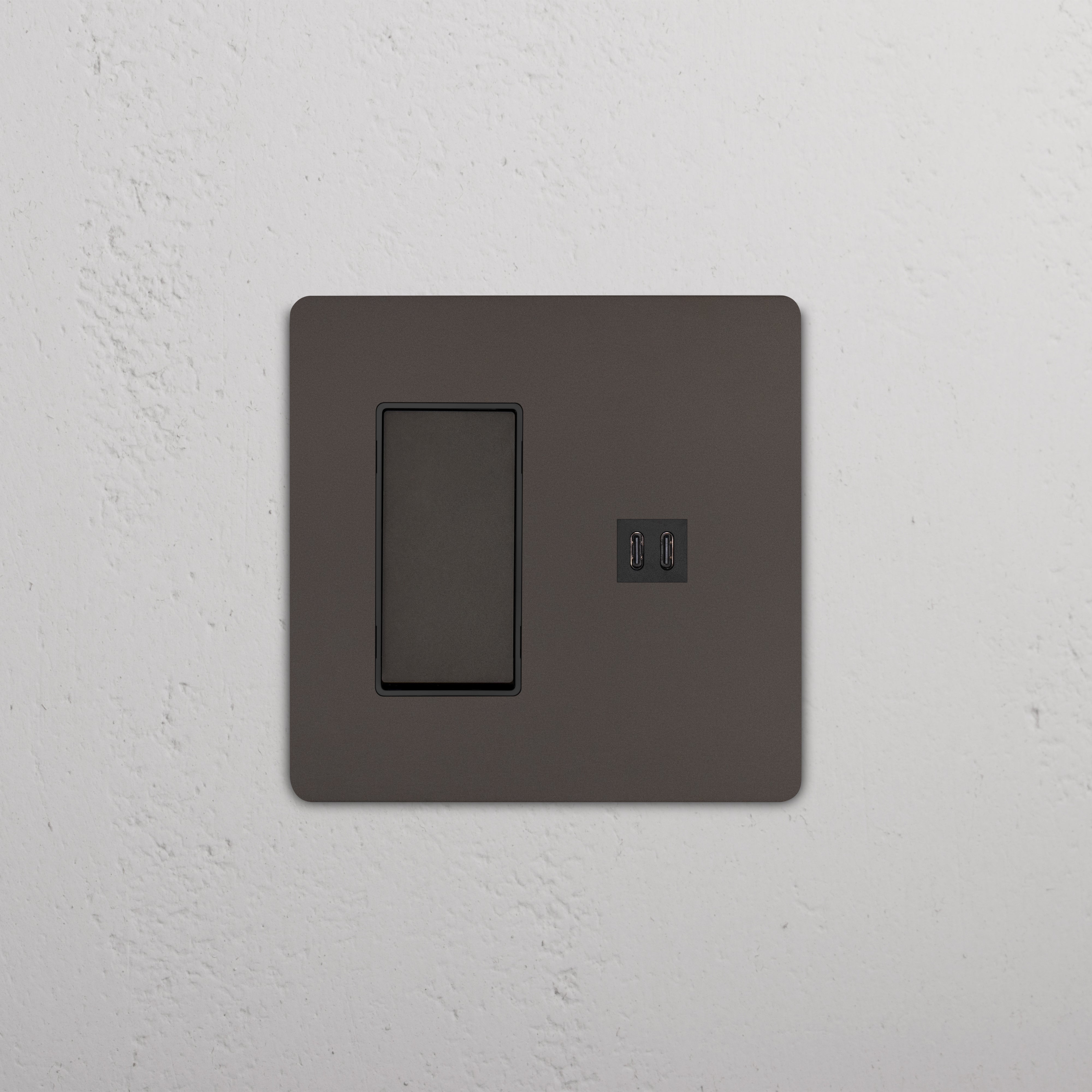 This 2 gang mixed switch and outlet combines a three-way rocker switch and a fast charge USB-C outlet on one plate.