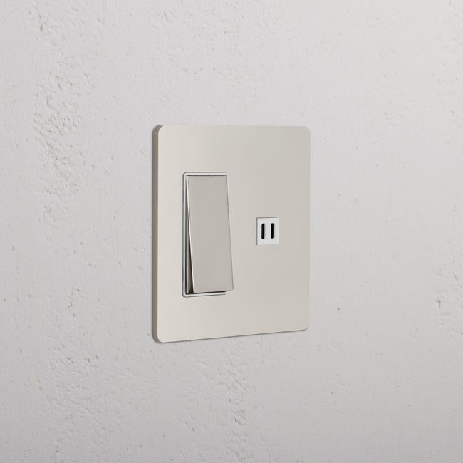 This 2 gang mixed switch and outlet combines a three-way rocker switch and a fast charge USB-C outlet on one plate.