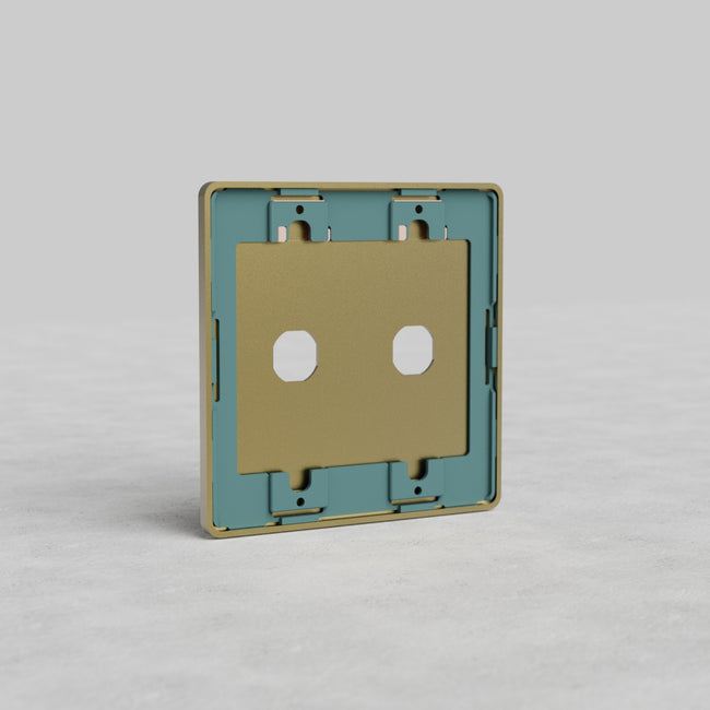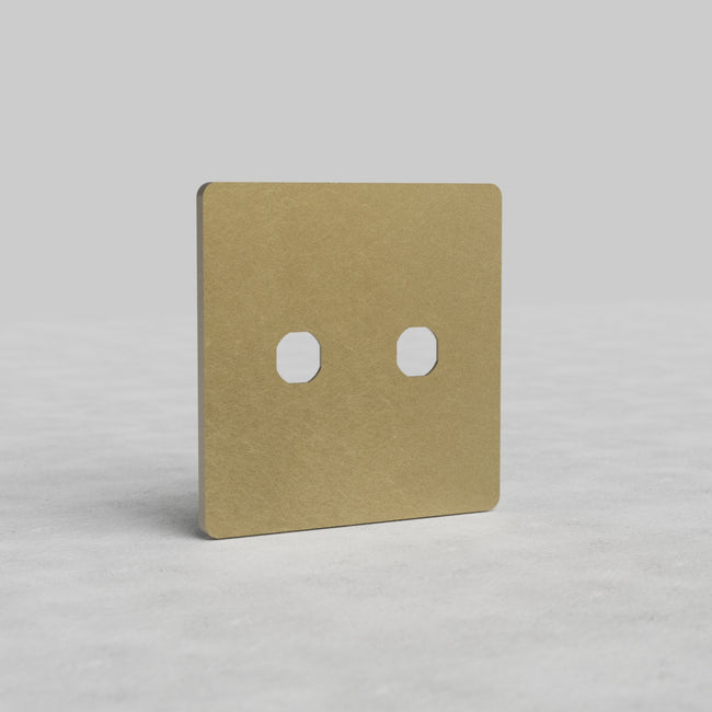 This Grove 2 gang switch plate works with any two of our antique brass toggle or rotary dimmer switches.