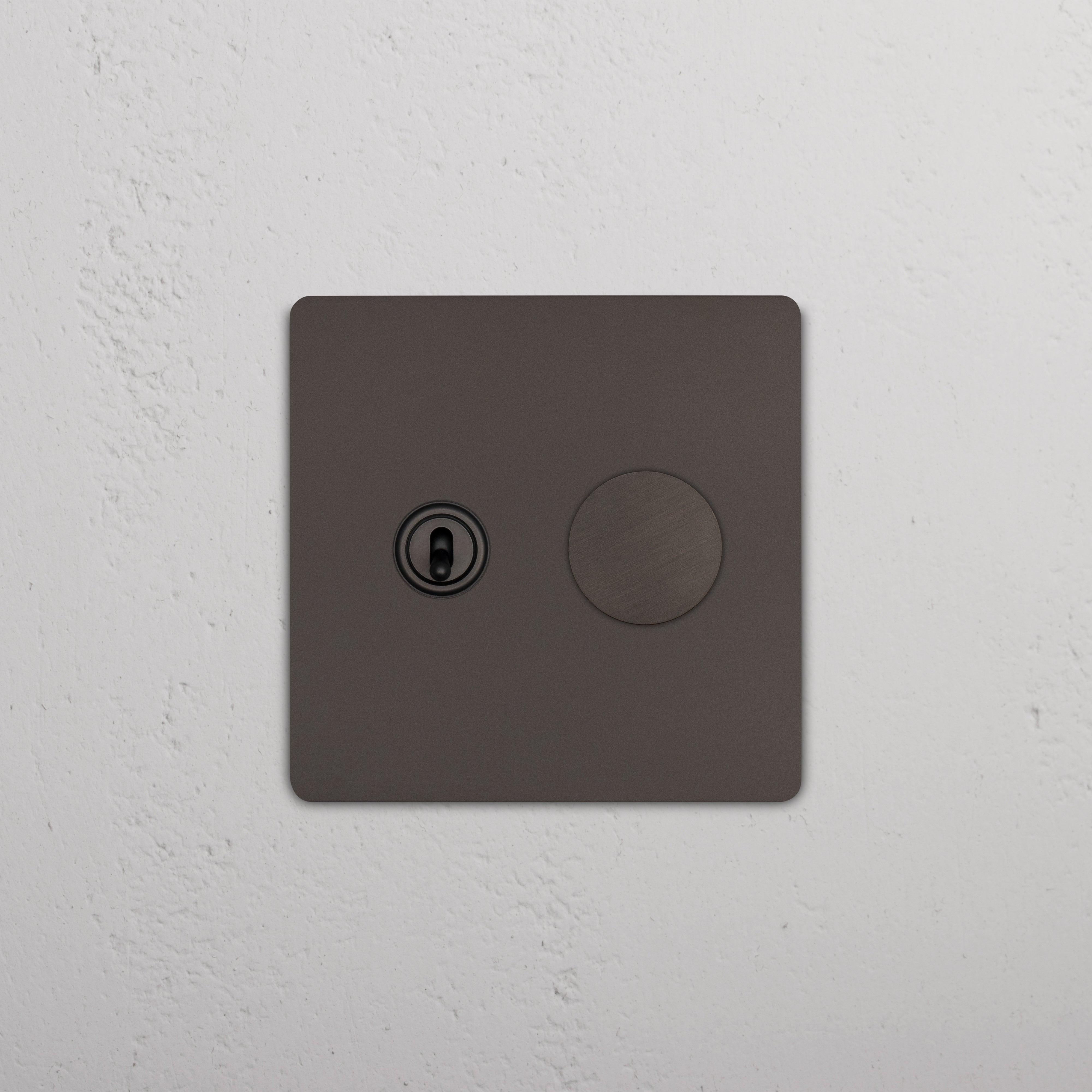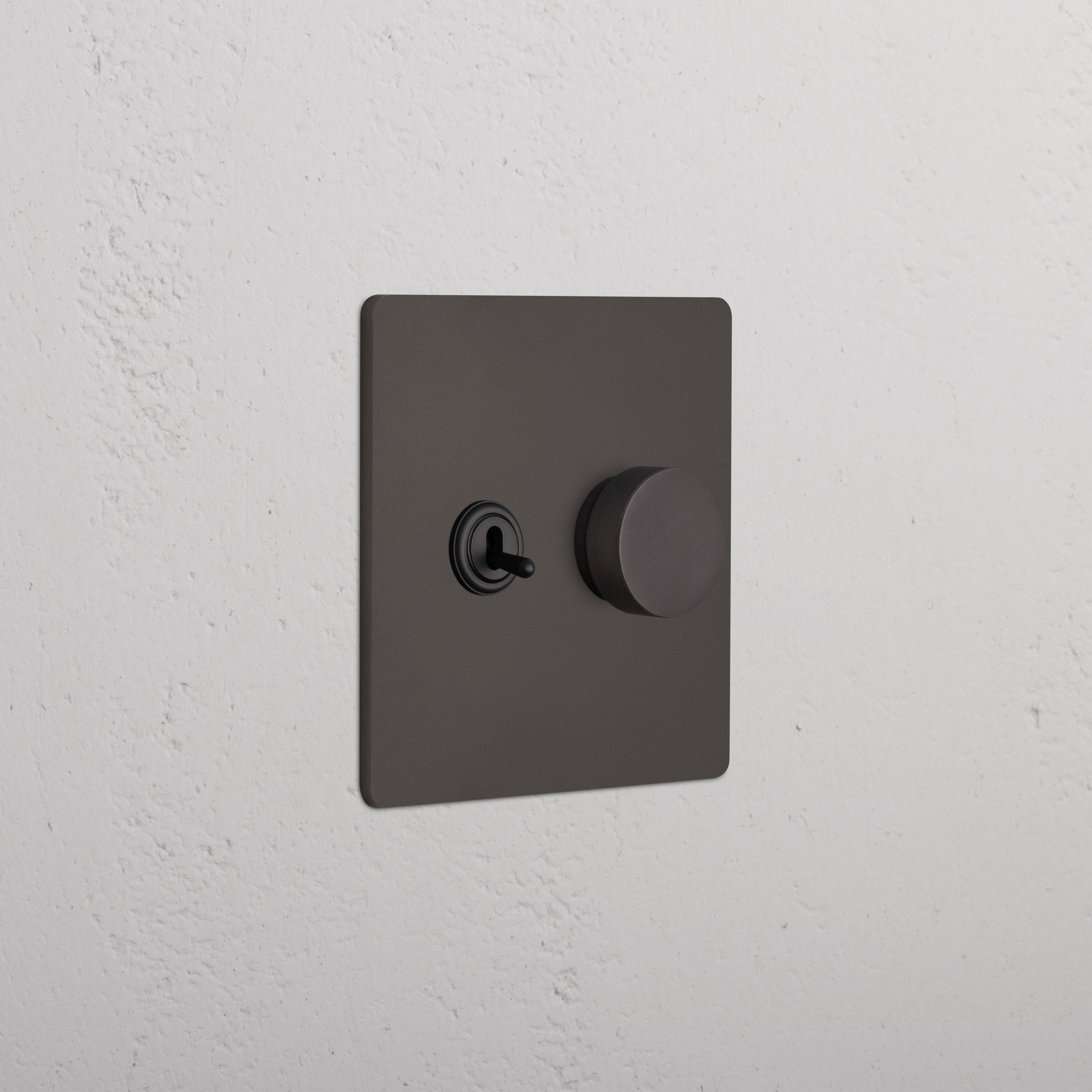 This 2 gang mixed switch combines a three-way toggle and a rotary dimmer on one plate.
