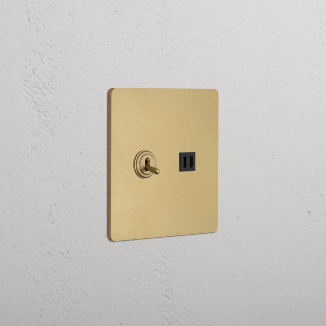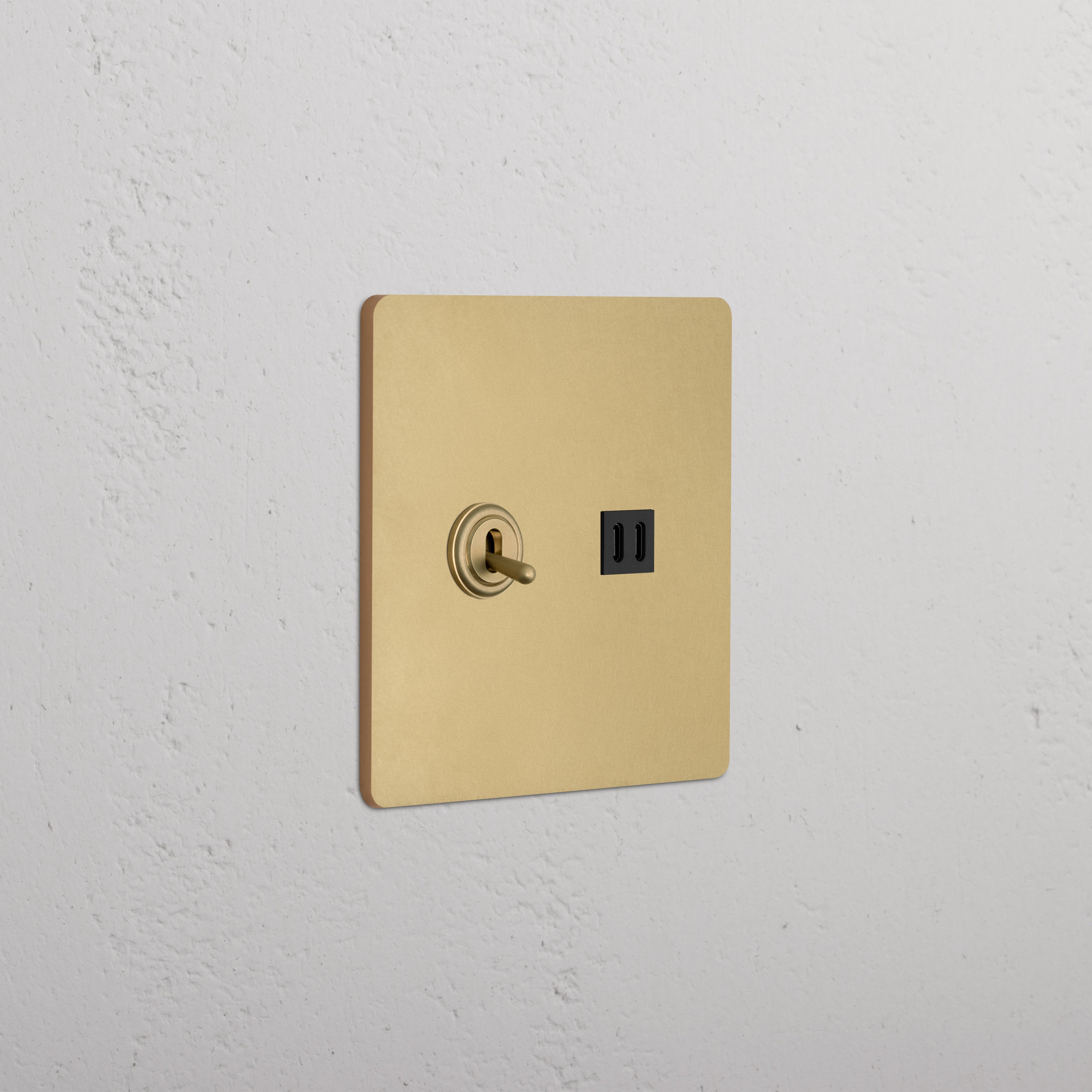 This 2 gang mixed switch and outlet combines a three-way toggle switch and a fast charge USB-C outlet on one plate.