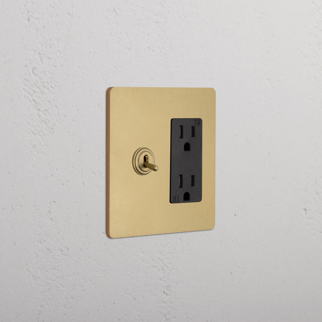 This 2 gang mixed switch and outlet combines a three-way toggle switch and a 15A power outlet on one plate.