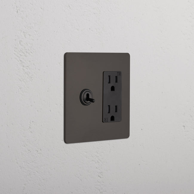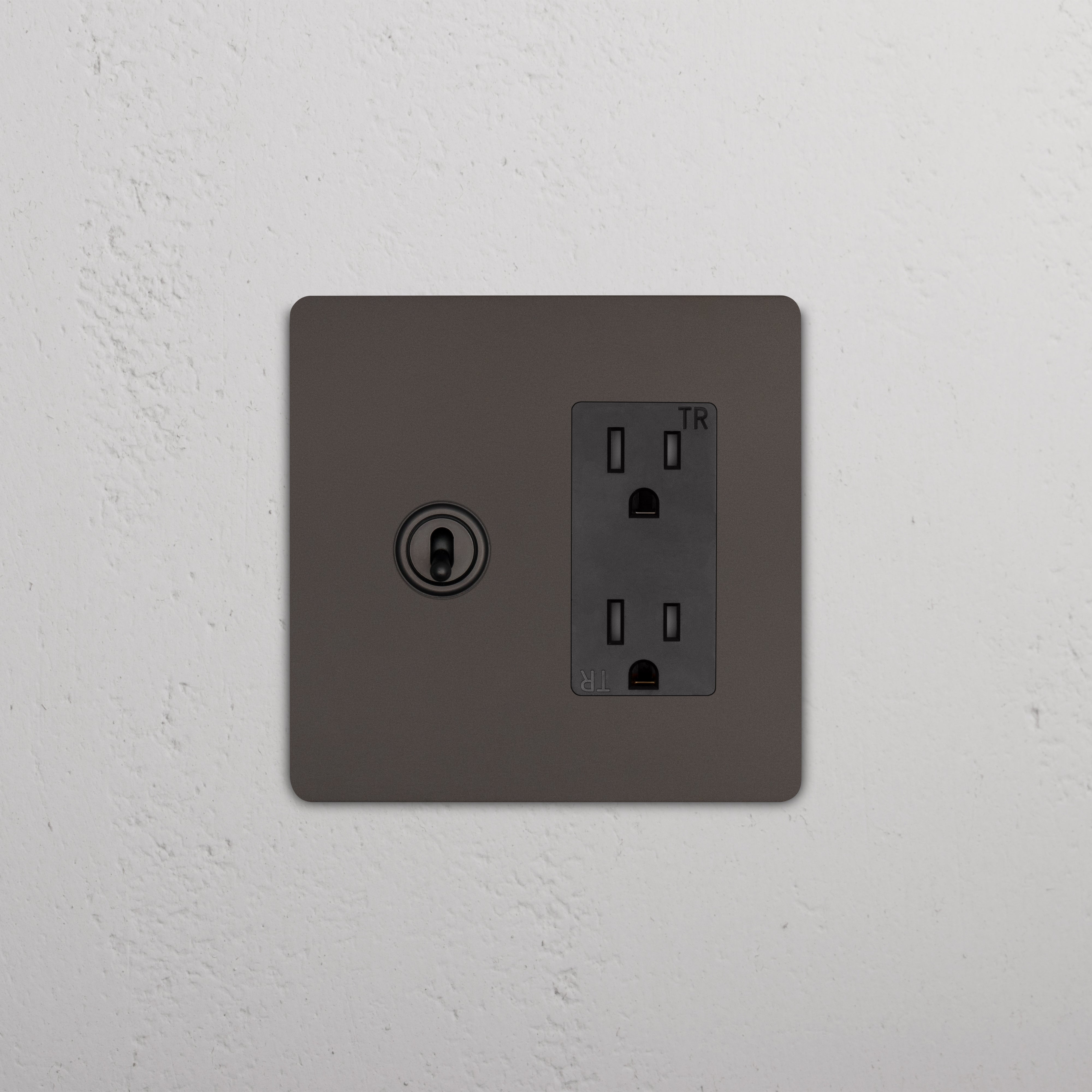 This 2 gang mixed switch and outlet combines a three-way toggle switch and a 15A power outlet on one plate.