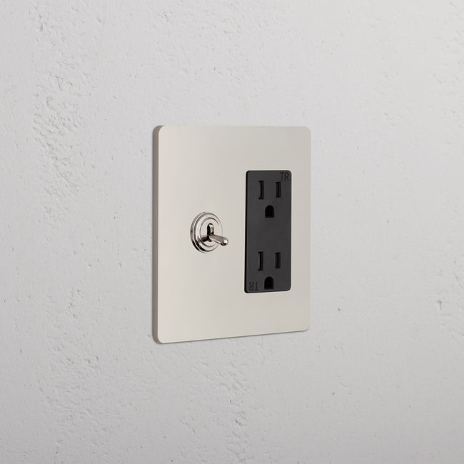 This 2 gang mixed switch and outlet combines a three-way toggle switch and a 15A power outlet on one plate.