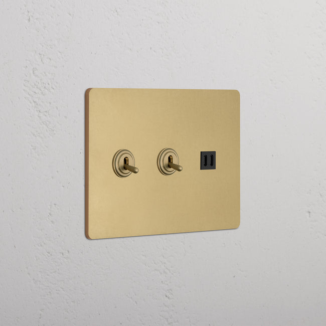 This 3 gang mixed switch and outlet combines two three-way toggle switches and a fast charge USB-C outlet on one plate.