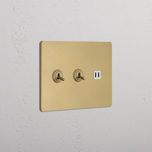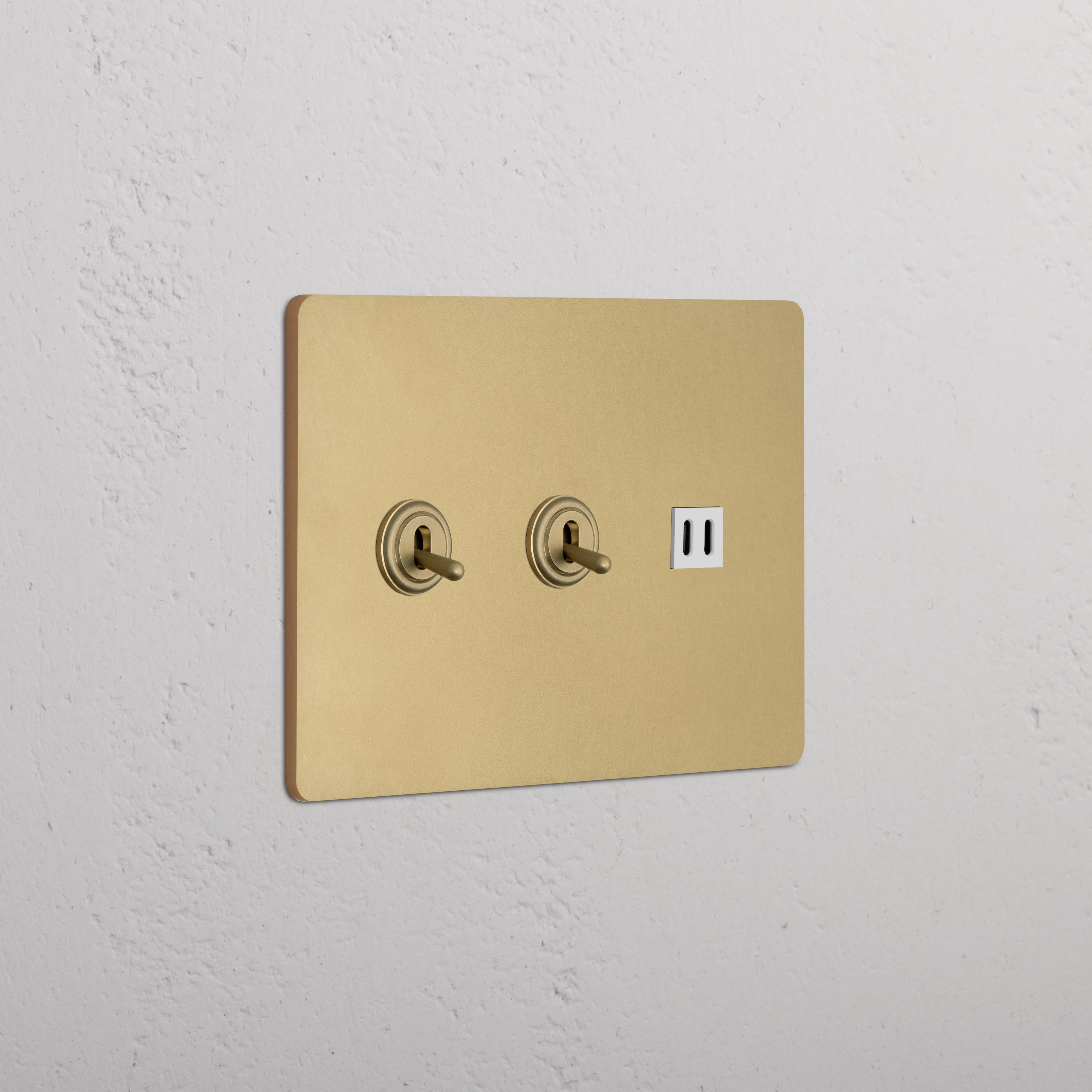 This 3 gang mixed switch and outlet combines two three-way toggle switches and a fast charge USB-C outlet on one plate.
