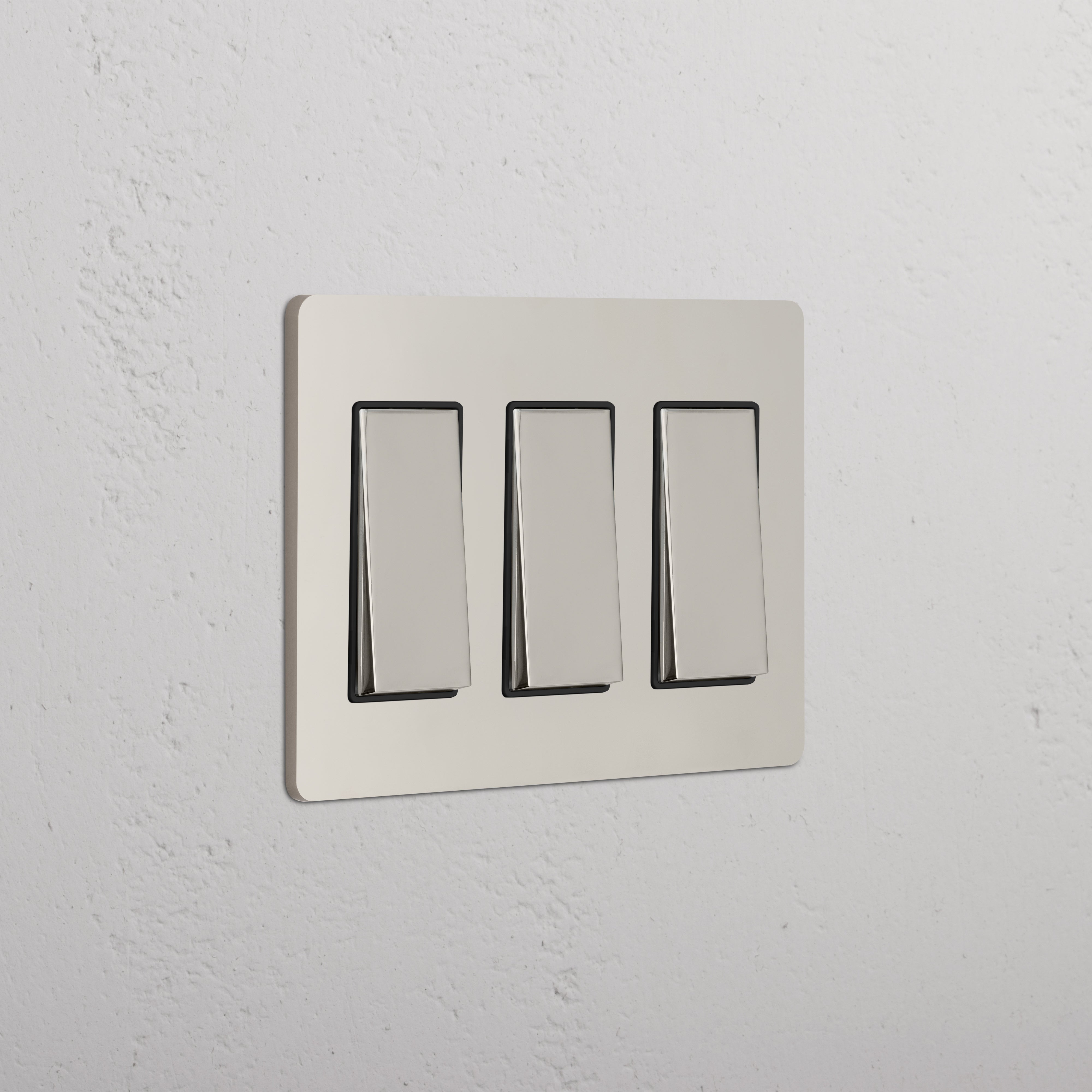 Our 3 gang three-way rocker switch is crafted to be as sleek and timeless as possible in any interior setting.