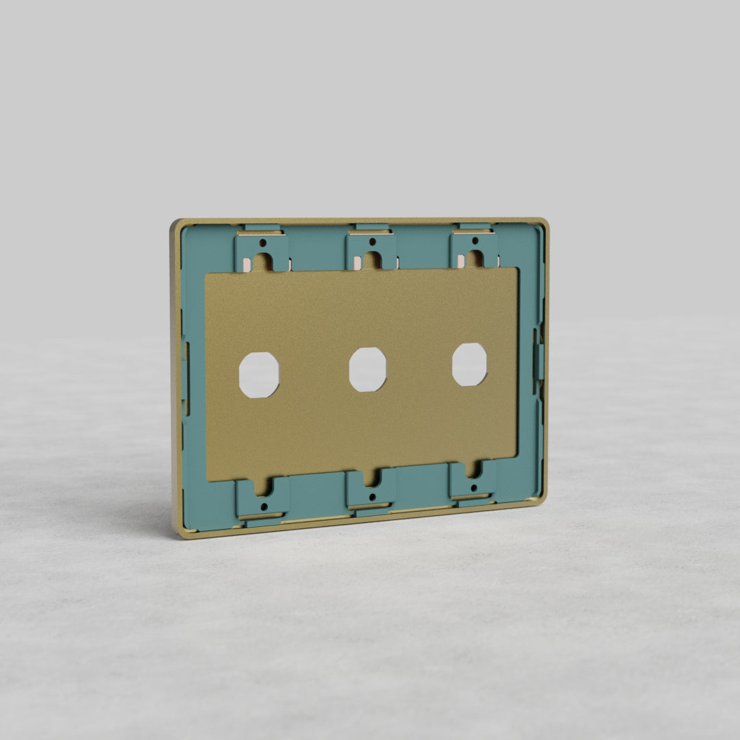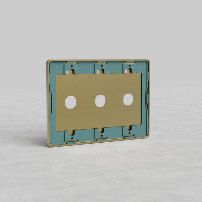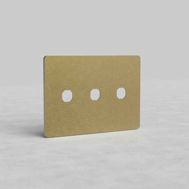 This Grove 3 gang switch plate works with any three of our antique brass toggle or rotary dimmer switches.