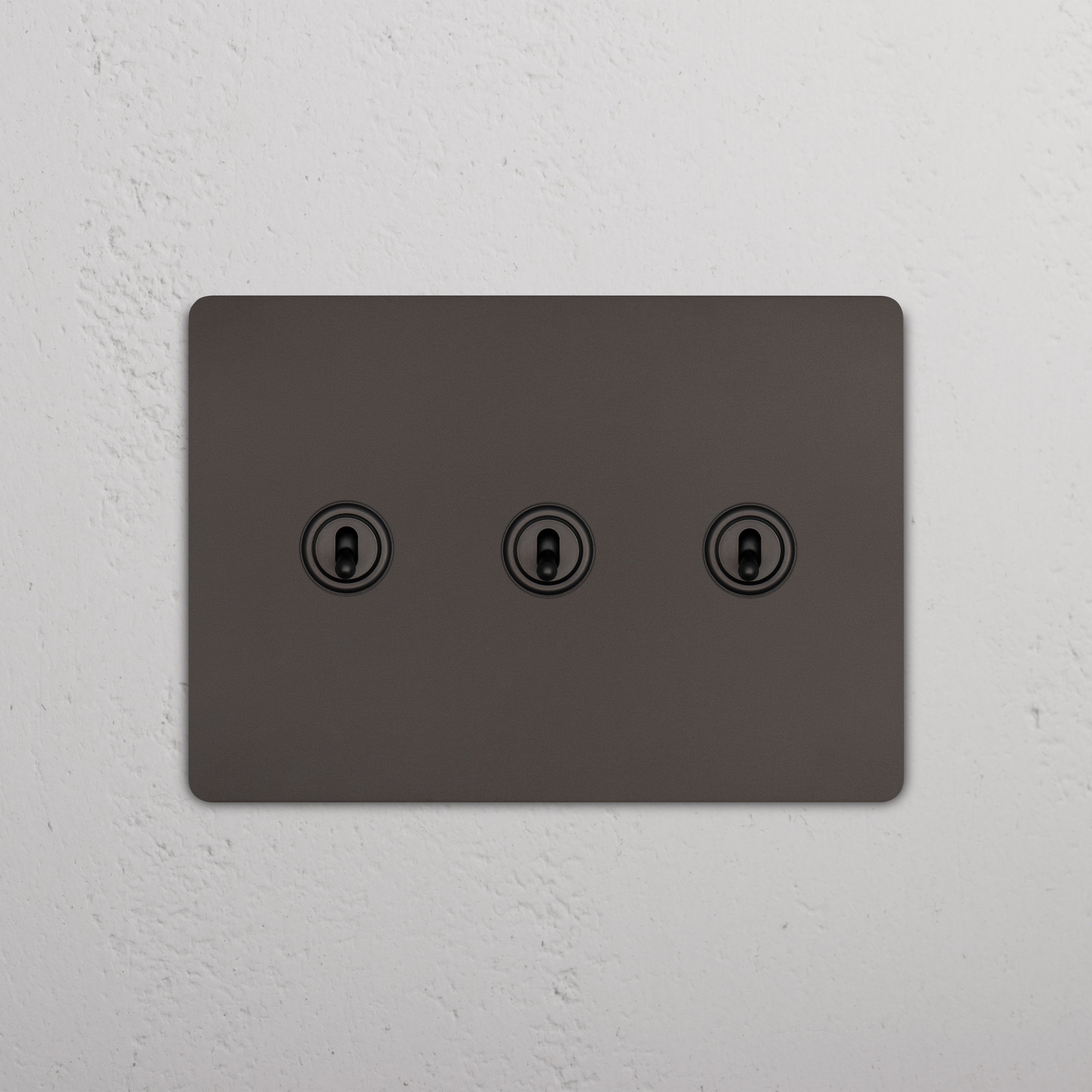 Our 3 gang three-way toggle switch is a modern take on the classic dolly design. We’ve crafted it to be as sleek and timeless as possible in any interior setting.