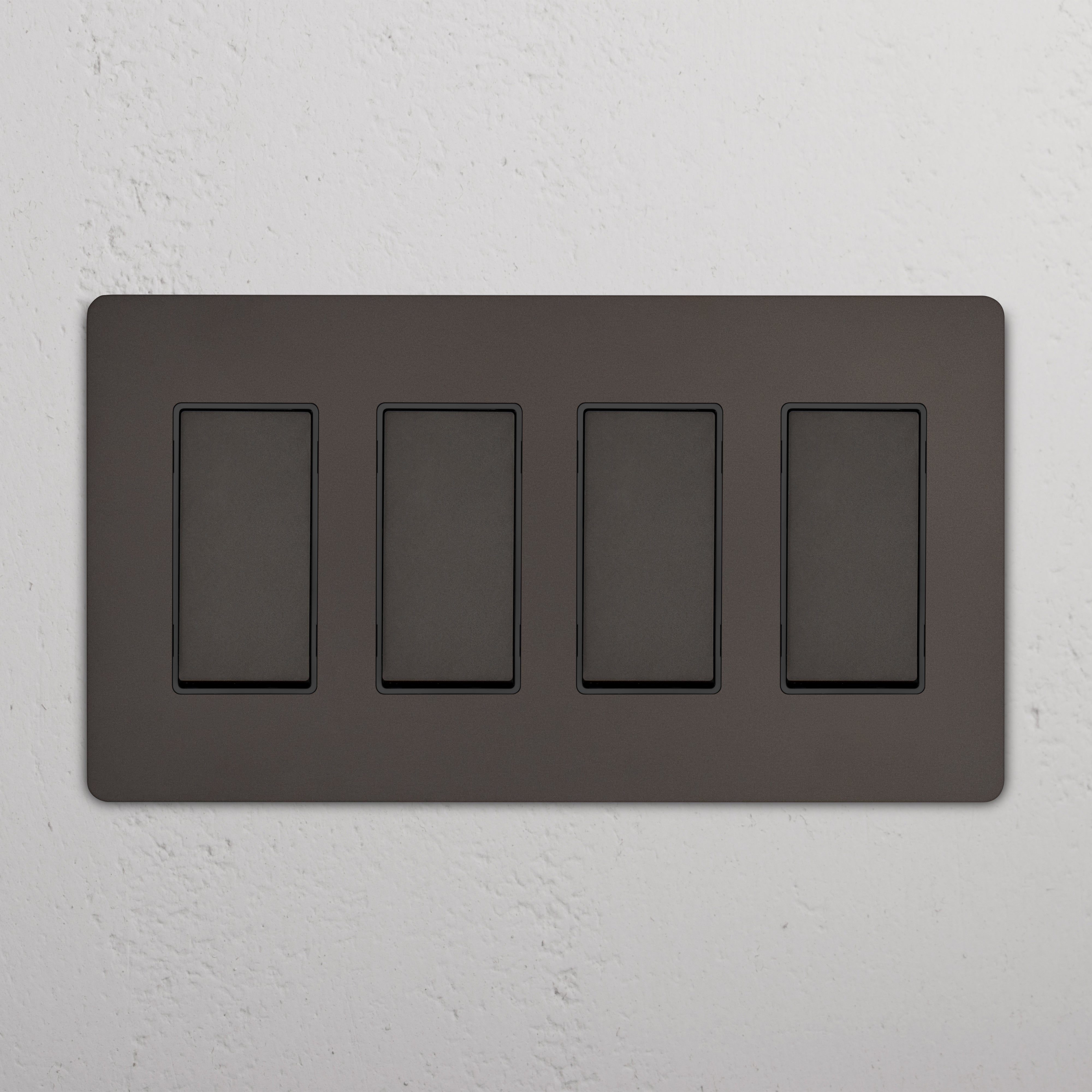 Our 4 gang three-way rocker switch is crafted to be as sleek and timeless as possible in any interior setting.