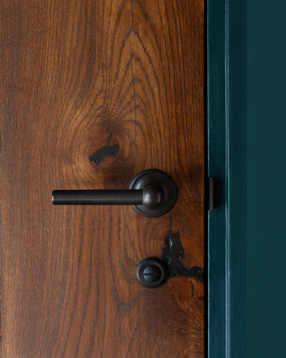 Our sprung handles come with a tubular latch. Our unsprung handles don’t come with one, but you can pair them with our passage tubular latch in bronze, antique brass, and polished nickel.
