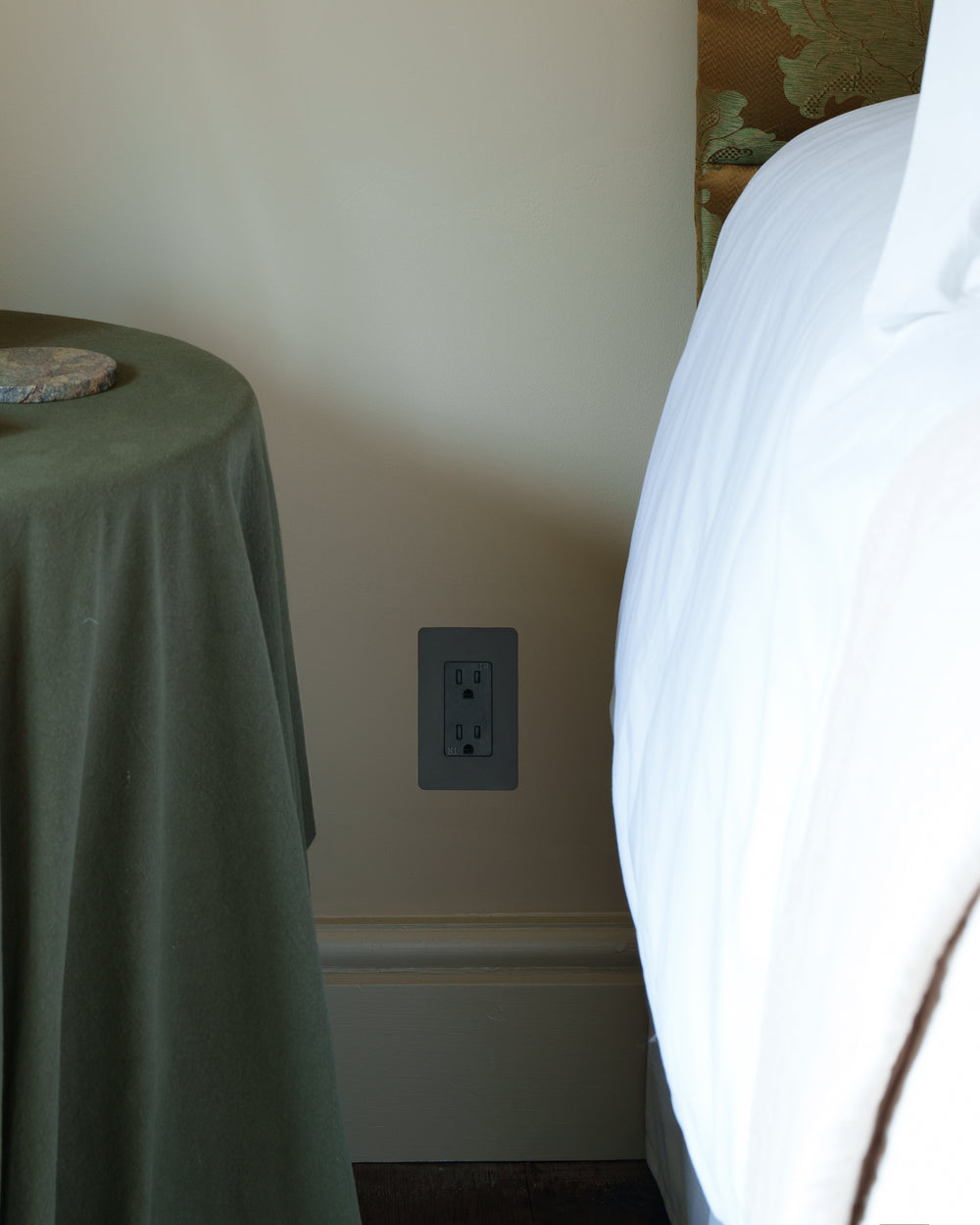 The low-sheen, slightly textured plastic insert around the outlet comes in black.