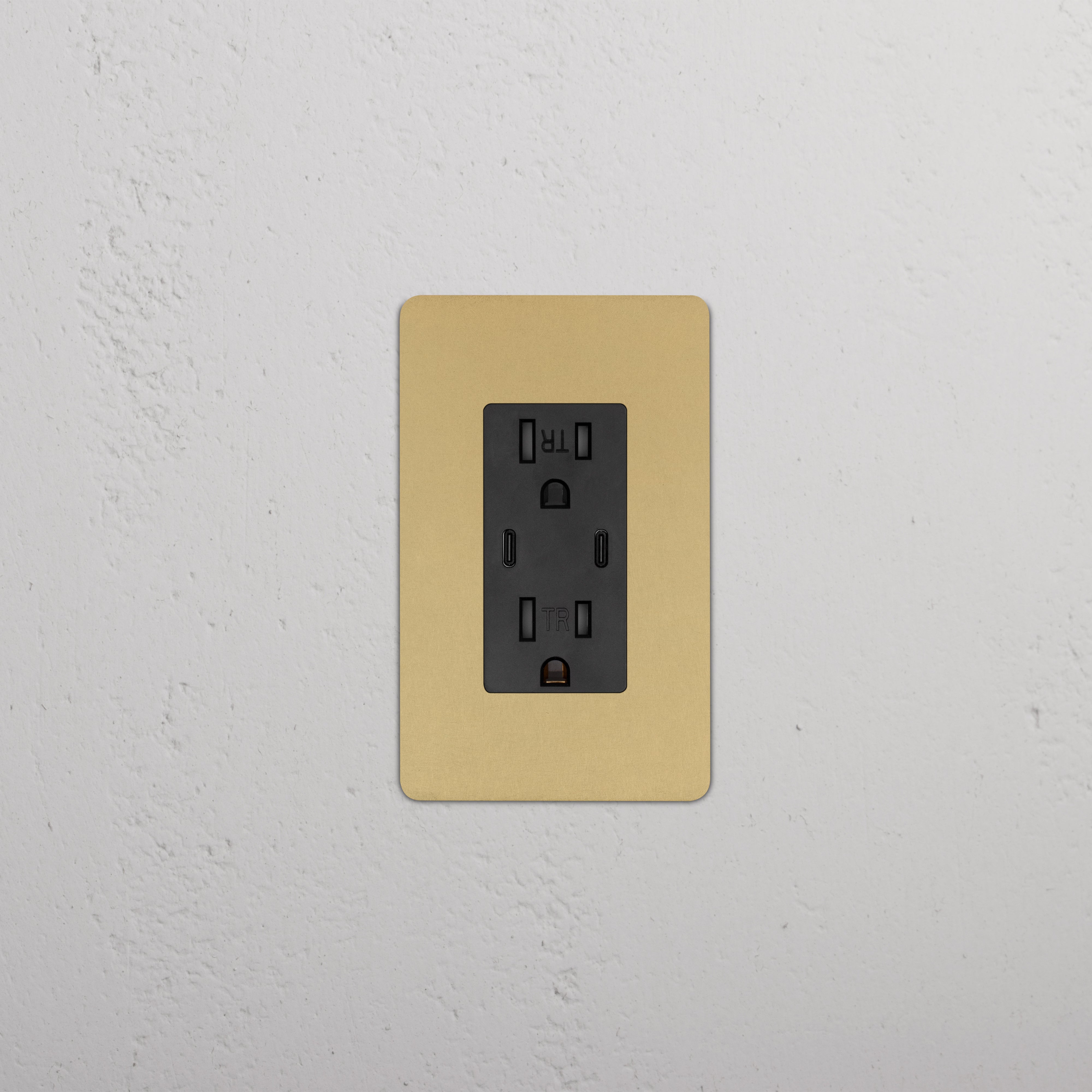 This 1 gang mixed outlet combines a 15A power outlet and a 45W USB-C keystone outlet on one plate.