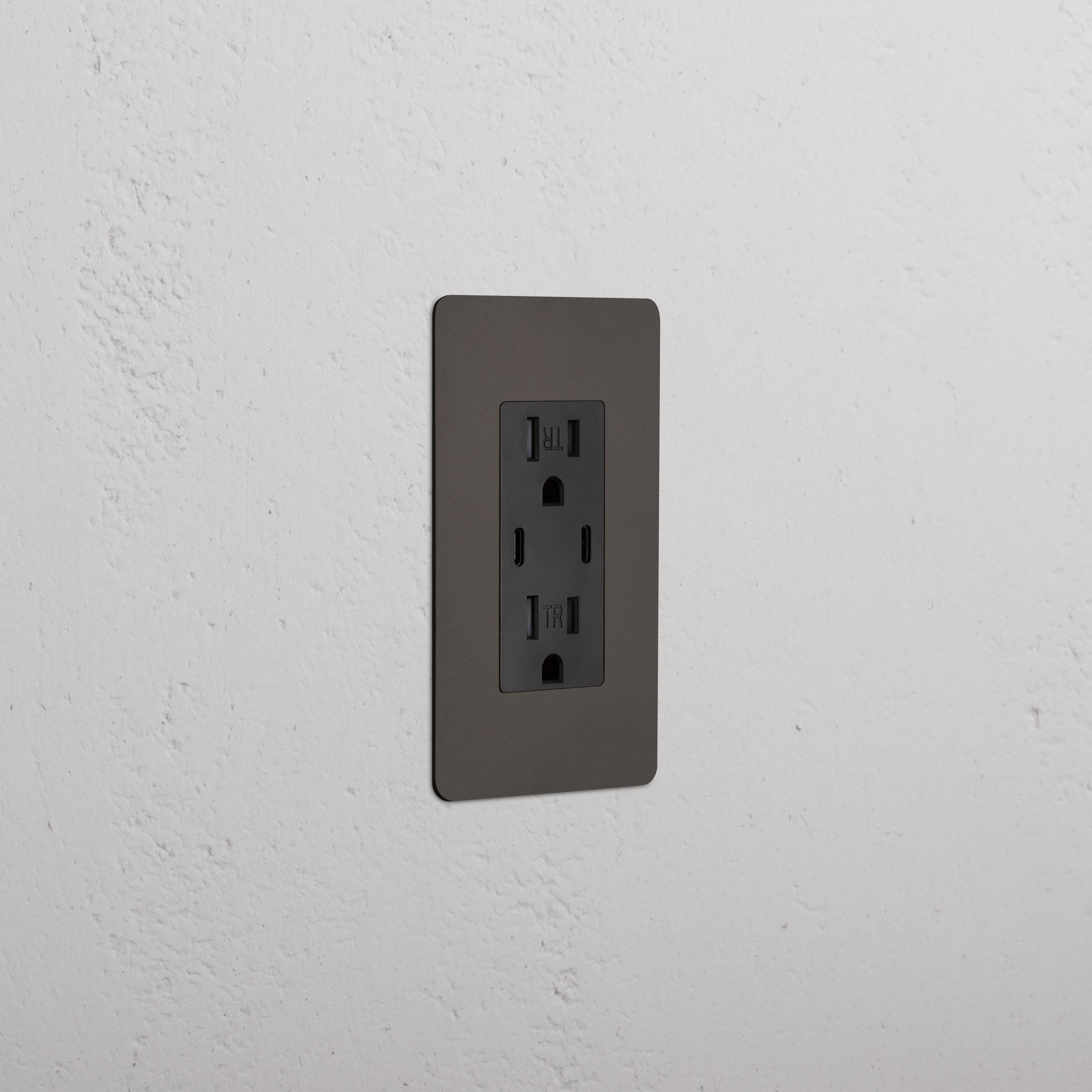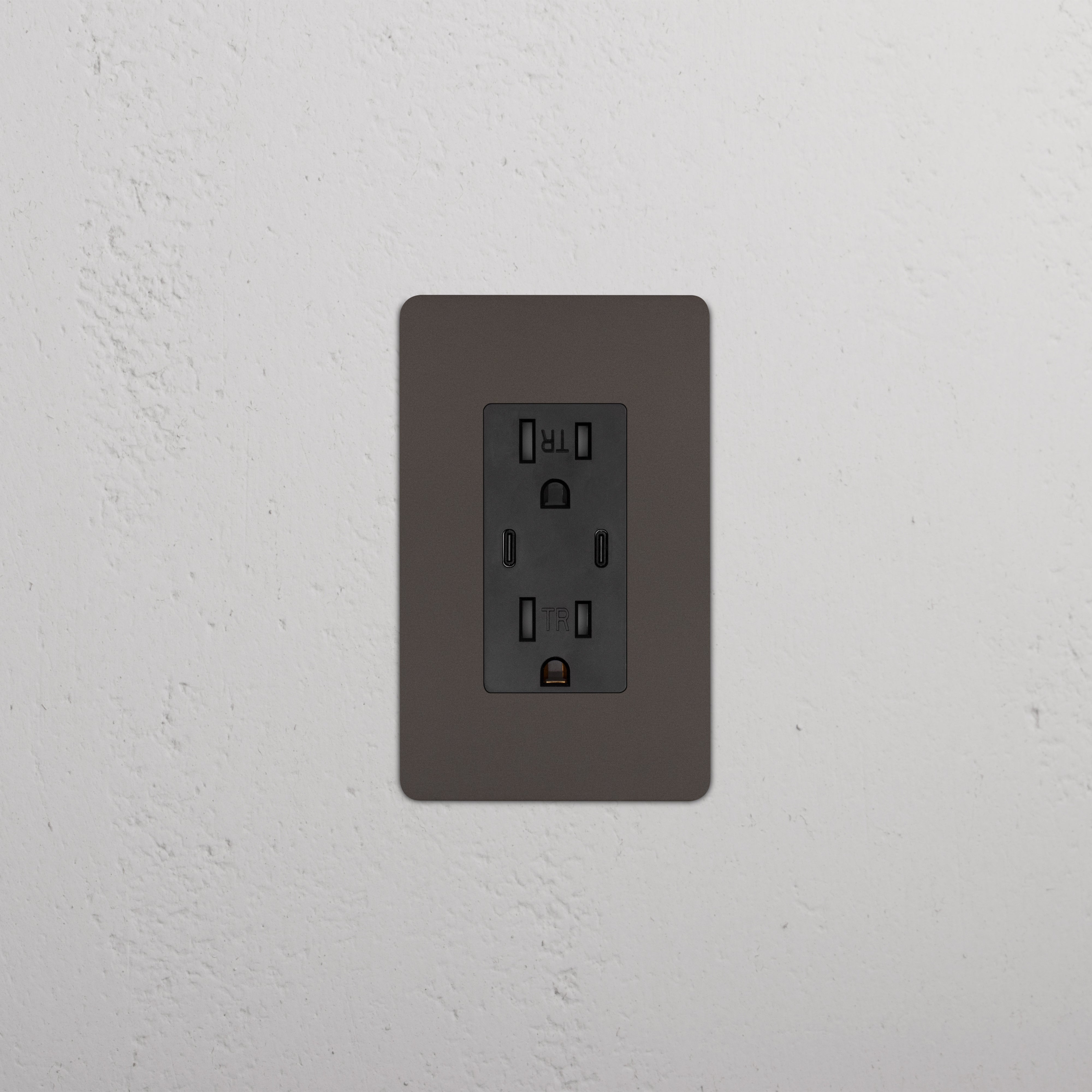 This 1 gang mixed outlet combines a 15A power outlet and a 45W USB-C keystone outlet on one plate.