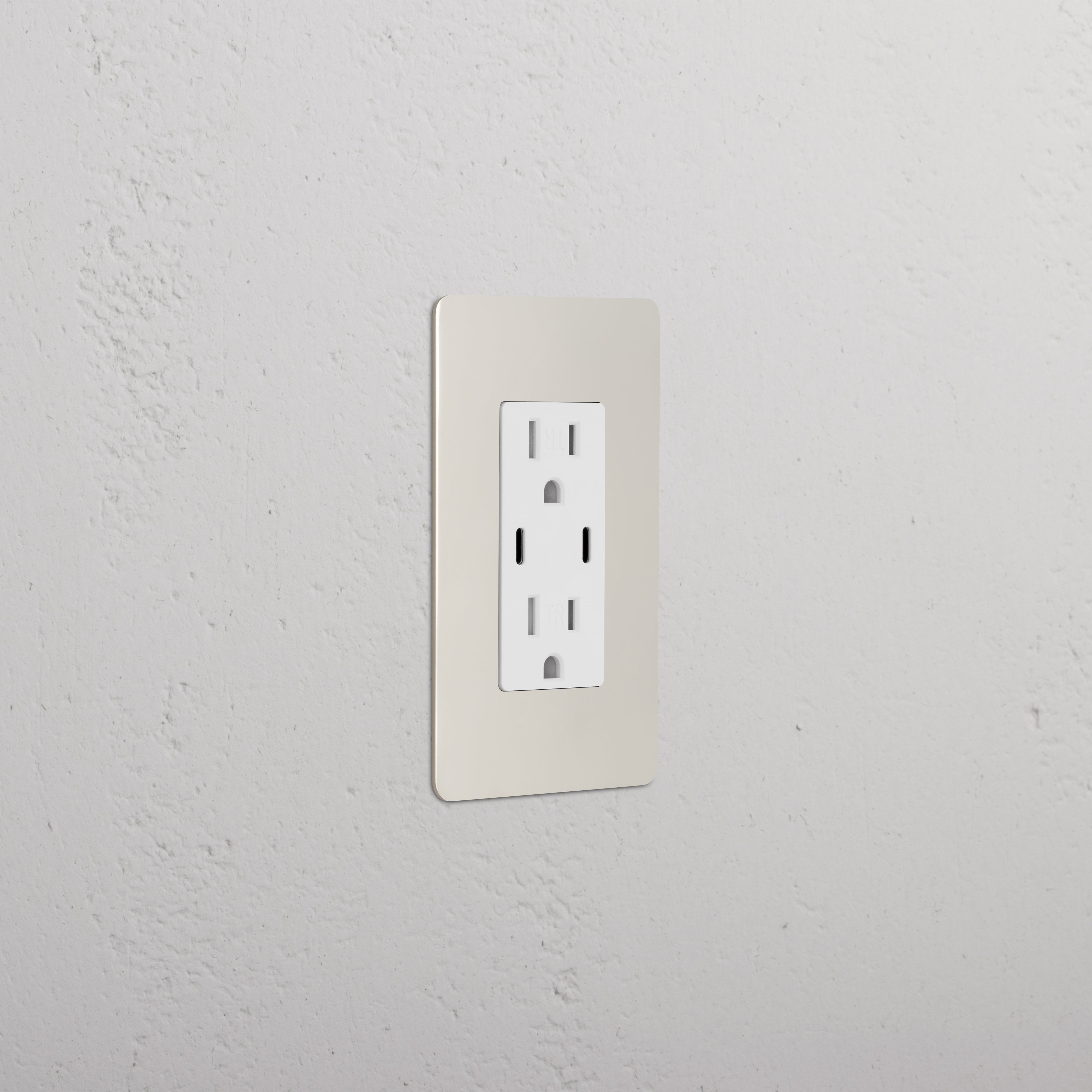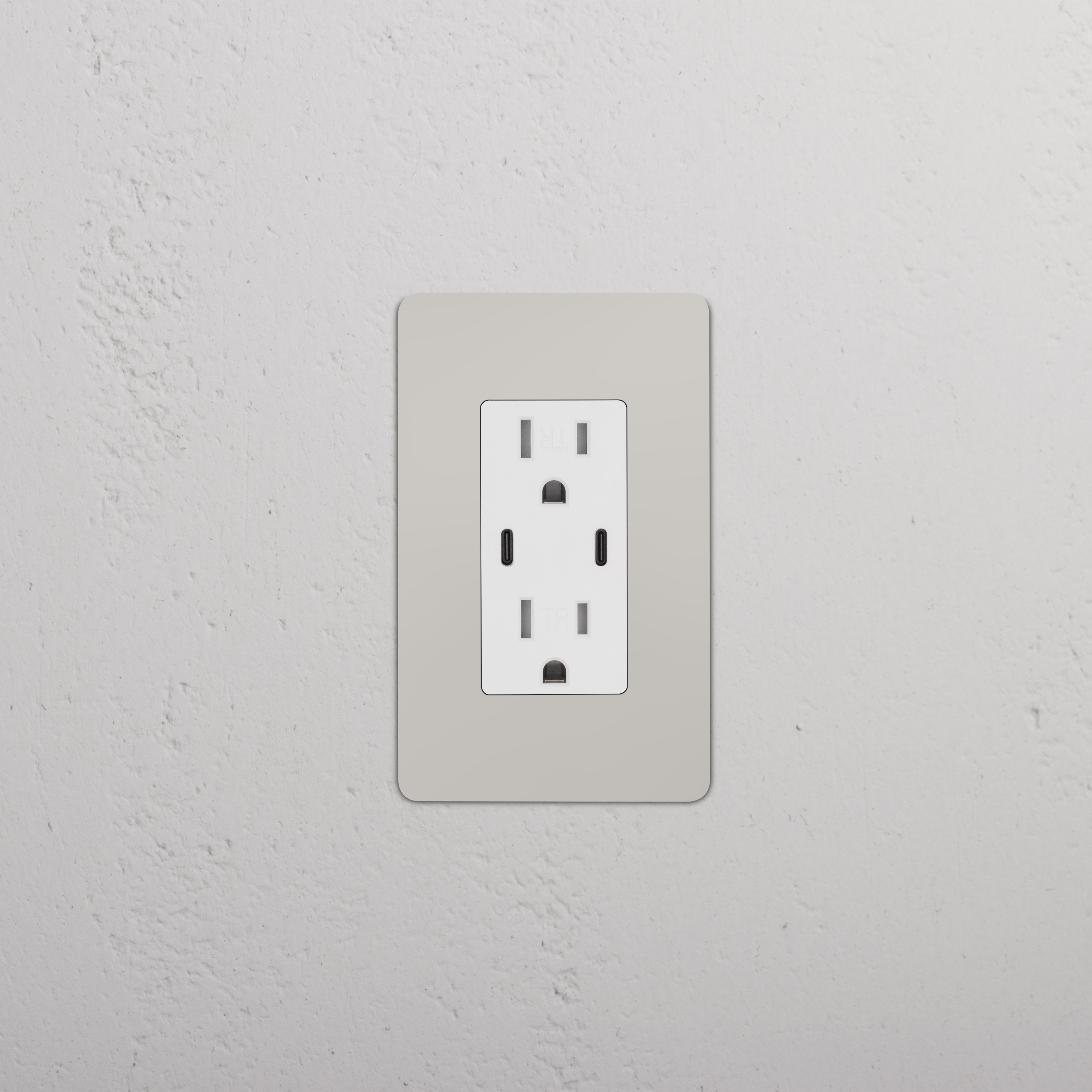 This 1 gang mixed outlet combines a 15A power outlet and a 45W USB-C keystone outlet on one plate.