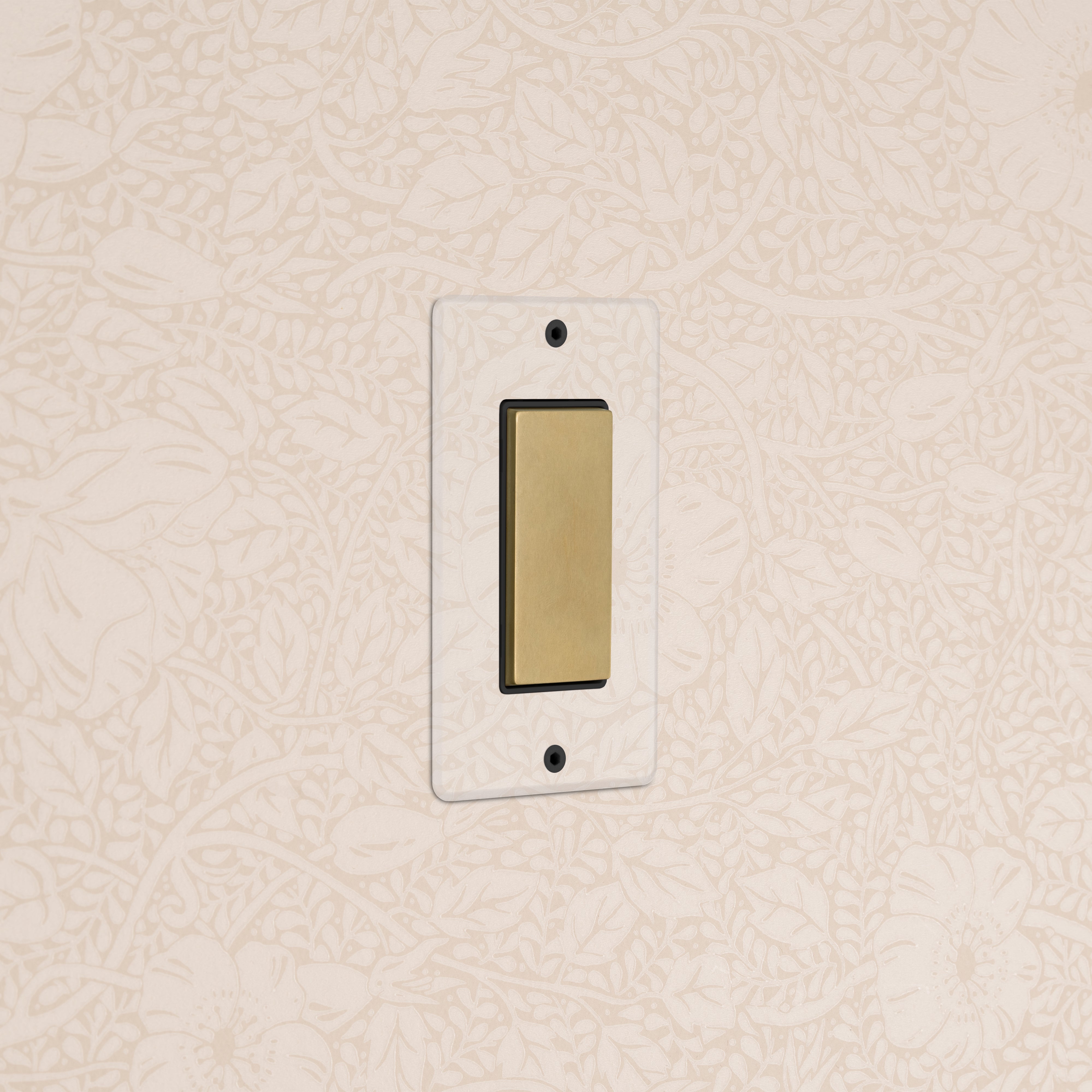 Our 1 gang center retractive rocker switch is crafted to be as sleek and timeless as possible in any interior setting.