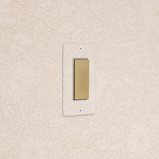 Our 1 gang center retractive rocker switch is crafted to be as sleek and timeless as possible in any interior setting.