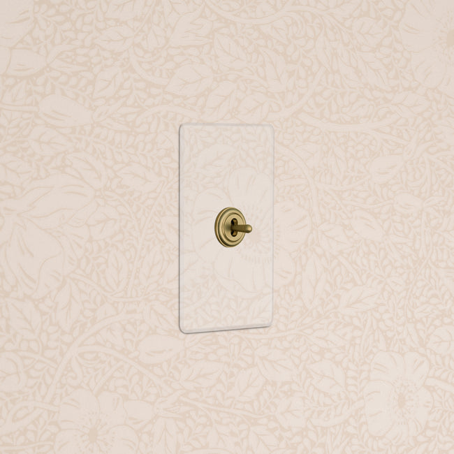 The clear switches and outlets in our Kew collection come with backing paper that you can either paint or use as a wallpaper template. The transparent front plate is then secured over the backing paper to conceal the electrics. All our electrical products should be installed by a qualified electrician.