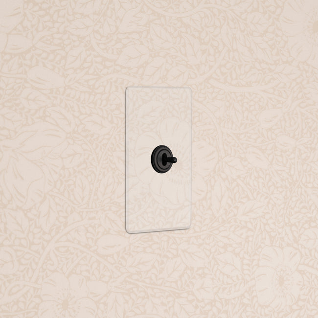 The clear switches and outlets in our Kew collection come with backing paper that you can either paint or use as a wallpaper template. The transparent front plate is then secured over the backing paper to conceal the electrics. All our electrical products should be installed by a qualified electrician.