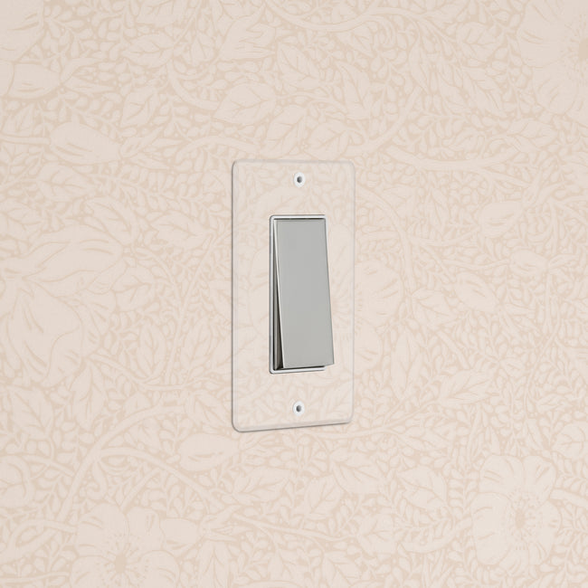 Our 1 gang double pole rocker switch is crafted to be as sleek and timeless as possible in any interior setting.