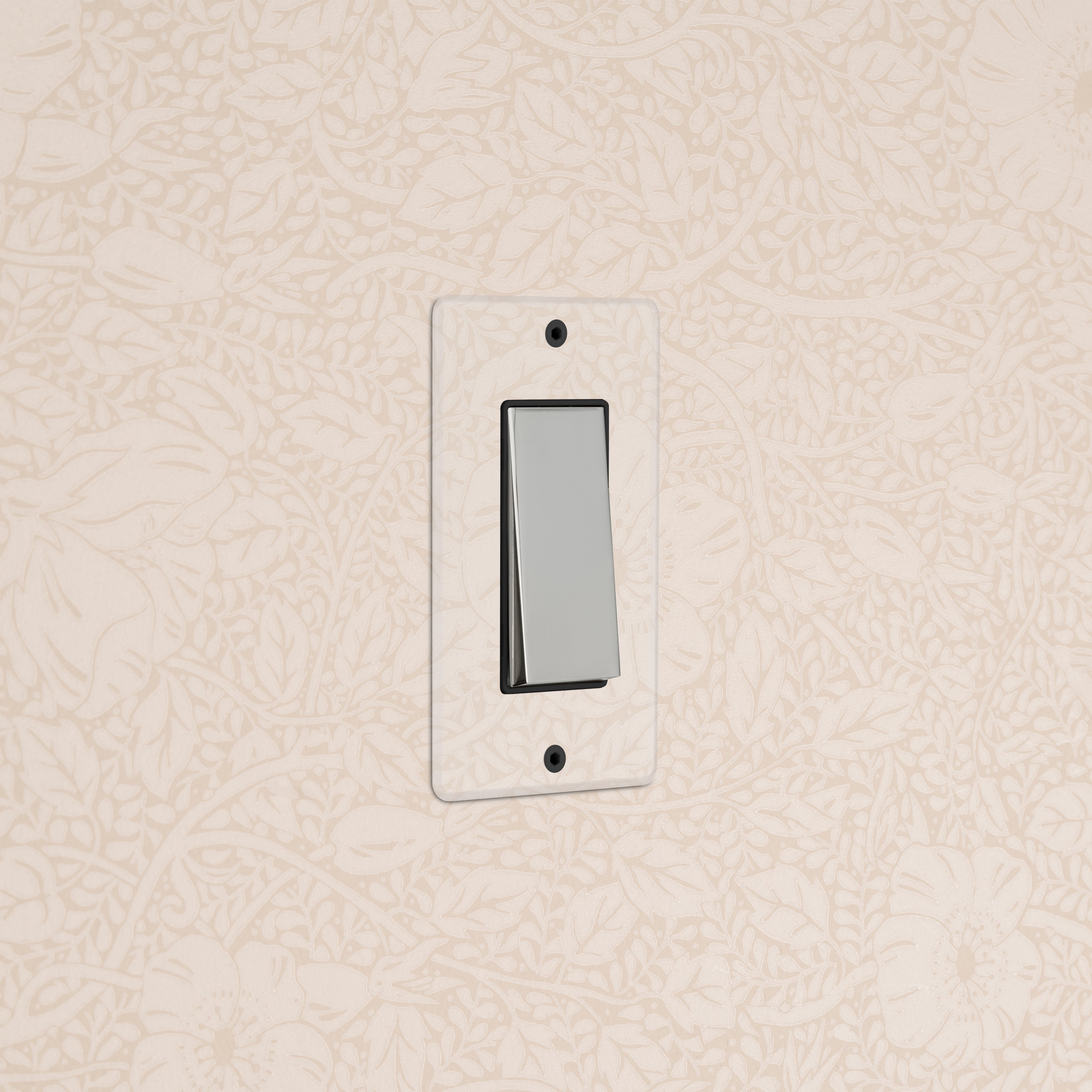 The clear switches and outlets in our Kew collection come with backing paper that you can either paint or use as a wallpaper template. The transparent front plate is then secured over the backing paper to conceal the electrics. All our electrical products should be installed by a qualified electrician.