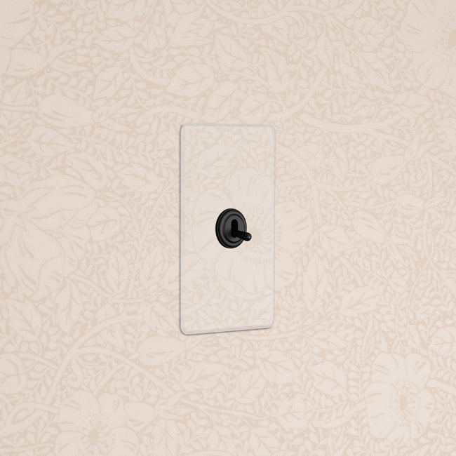 The clear switches and outlets in our Kew collection come with backing paper that you can either paint or use as a wallpaper template. The transparent front plate is then secured over the backing paper to conceal the electrics. All our electrical products should be installed by a qualified electrician.