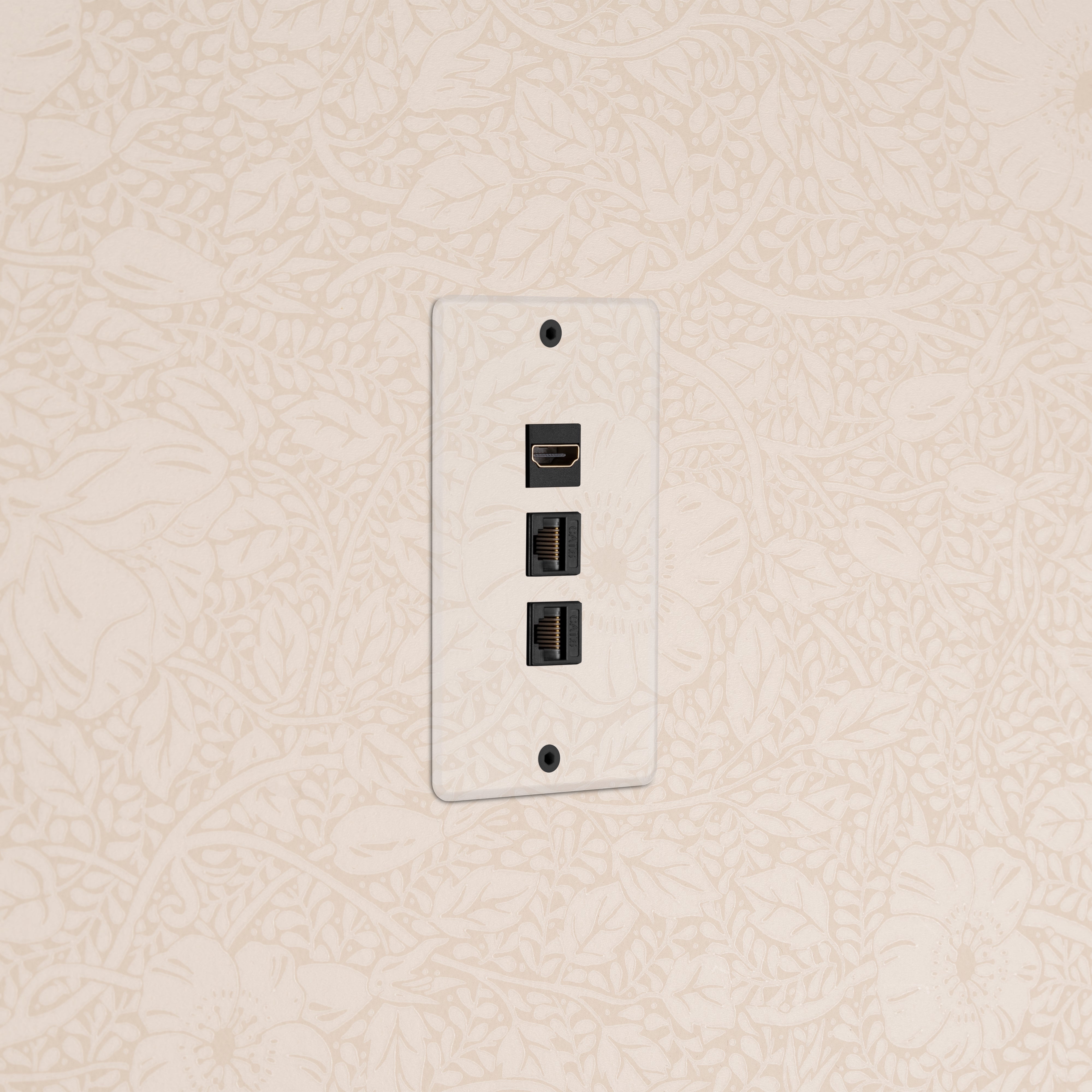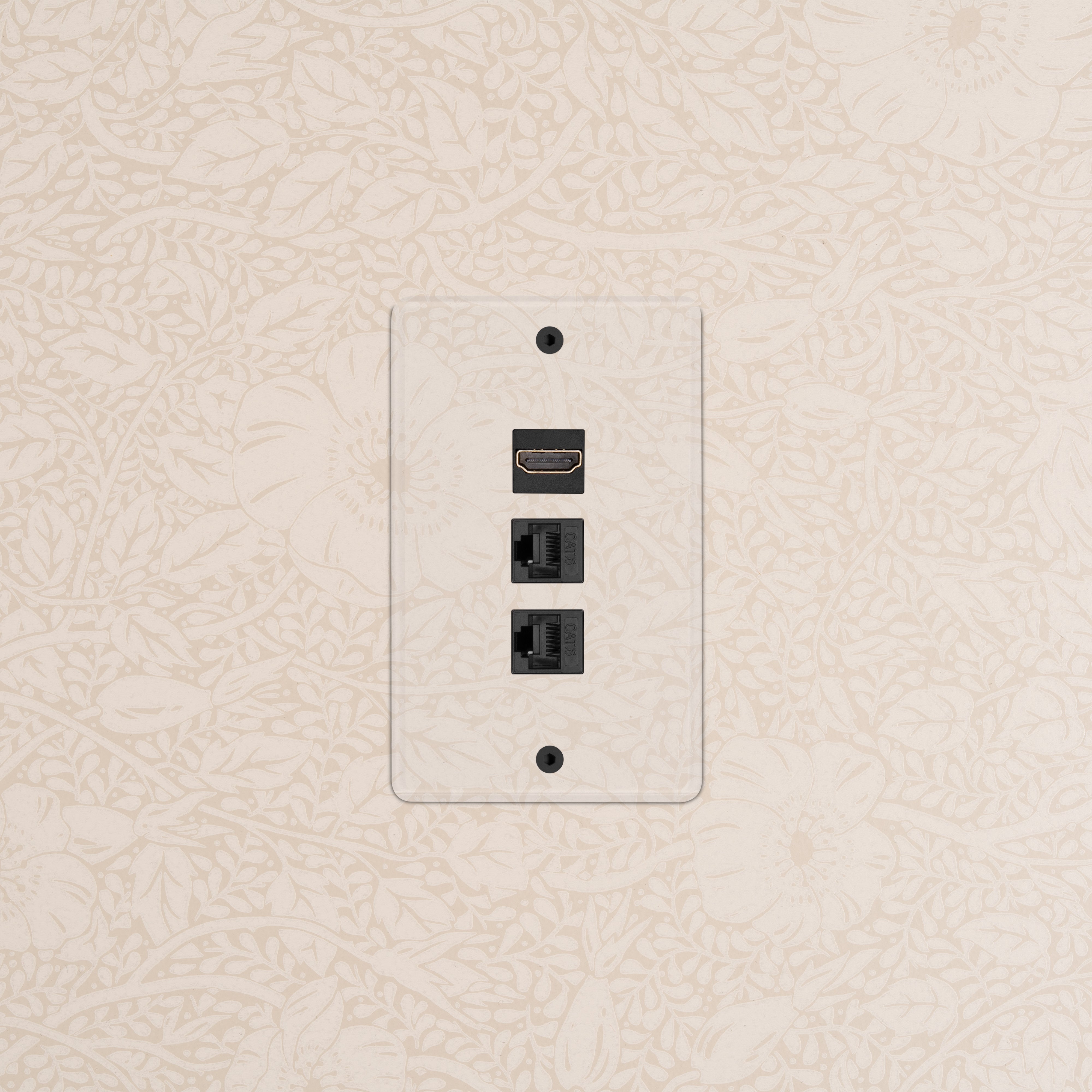 This 1 gang mixed outlet combines an HDMI keystone outlet and two CAT 6 keystone outlets on one plate.