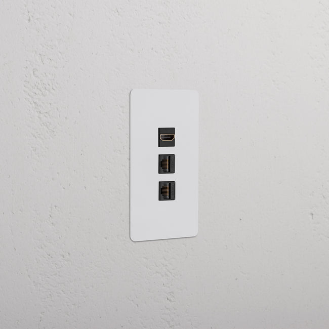 This 1 gang mixed outlet combines an HDMI keystone outlet and two CAT 6 keystone outlets on one plate.